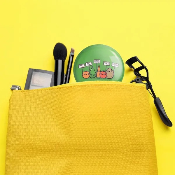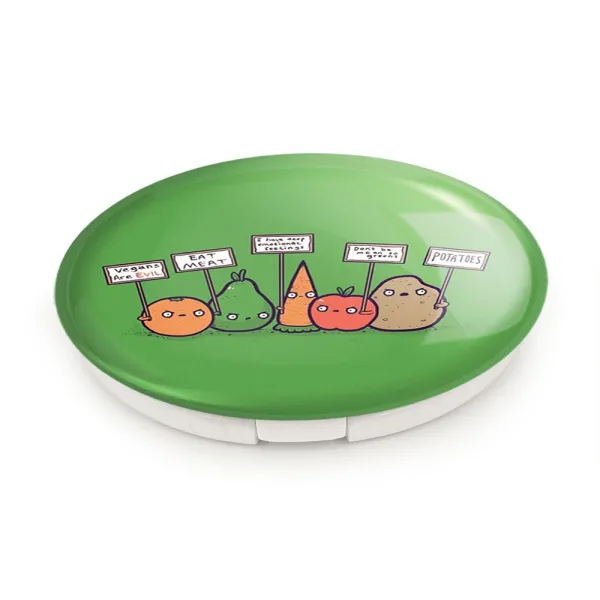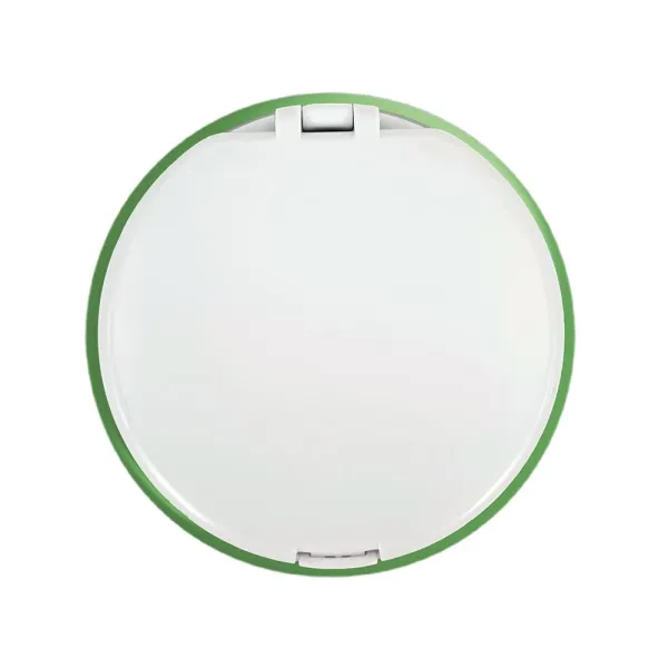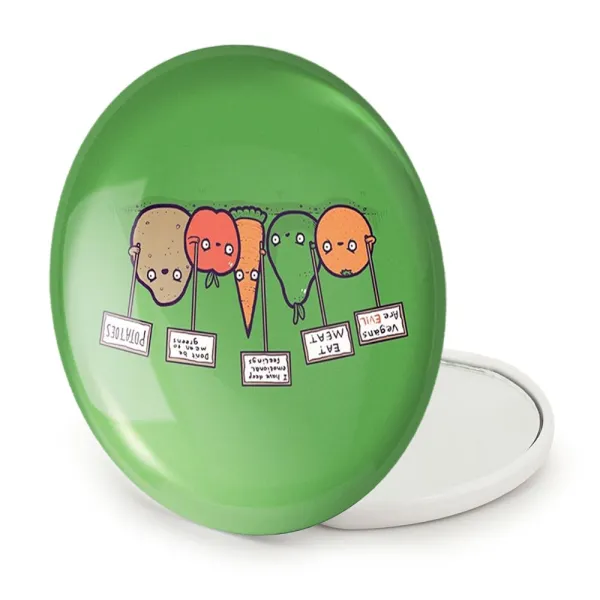 آینه های تاشو وگن Vegan خندالو، از جنس پلاستیک فشرده ABS تولید شده و به رنگ سفید می باشد. یکی از آینه ها ابعاد واقعی را نشان داده و دیگری با قابلیت بزرگنمایی، جزئیات را بهتر نمایش می دهد.