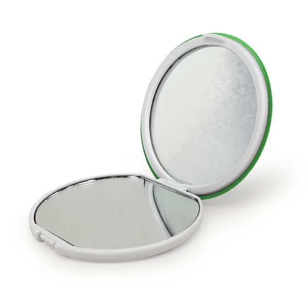 آینه های تاشو وگن Vegan خندالو، از جنس پلاستیک فشرده ABS تولید شده و به رنگ سفید می باشد. یکی از آینه ها ابعاد واقعی را نشان داده و دیگری با قابلیت بزرگنمایی، جزئیات را بهتر نمایش می دهد.
