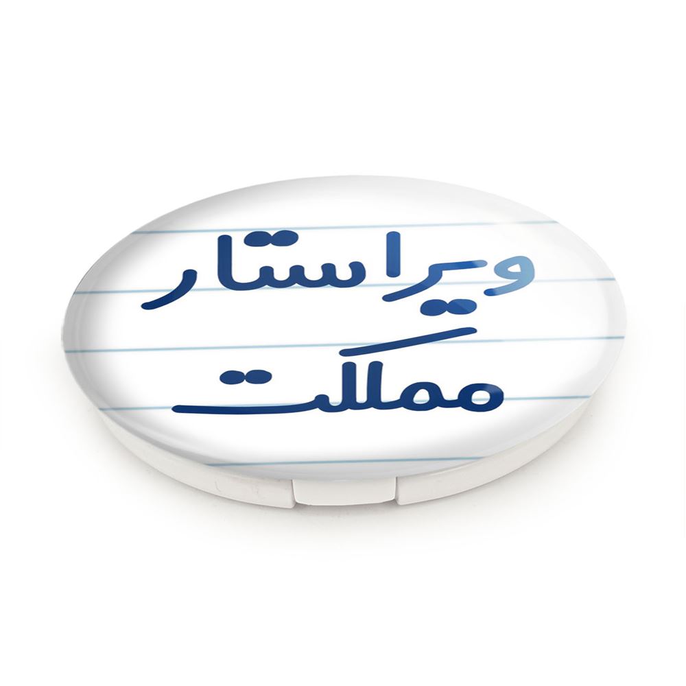 آینه های تاشو ویراستار مملکت خندالو، از جنس پلاستیک فشرده ABS تولید شده و به رنگ سفید می باشد. یکی از آینه ها ابعاد واقعی را نشان داده و دیگری با قابلیت بزرگنمایی، جزئیات را بهتر نمایش می دهد. ابعاد هر یک از آینه ها، دایره ای به قطر 7.5 سانت می باشد که نه خیلی بزرگ و غیر قابل استفاده در کیف آرایشی ست و نه خیلی کوچک که تصویر خاصی در آن مشاهده نشود. آینه تاشو ویراستار مملکت سایزی استاندارد و کارآمد دارد و در هر کیفی جا میگیرد. چاپ طرح بوسیله چاپگرهای دیجیتال شش رنگ با شفافیت و کیفیتی مثال زدنی بر روی یک وجه از بدنه ی آینه انجام گرفته و با روکش لمینت حرارتی پوشیده شده که در مقابل آسیب و خط و خش مقاوم بوده و کیفیت بالایی دارد. درب آینه بوسیله قفل بدنه ی آن، باز نمی ماند و کاملا بسته می شود و مناسب قرار گیری در کیف لوازم آرایش و کیف های کوچک دستی نیز هست. آینه های تاشو ویراستار مملکت خندالو با تنوع طرحی بسیار بالا، سلیقه هر نوع مخاطبی را تامین میکند.