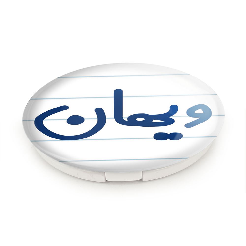 آینه های تاشو ویهان خندالو، از جنس پلاستیک فشرده ABS تولید شده و به رنگ سفید می باشد. یکی از آینه ها ابعاد واقعی را نشان داده و دیگری با قابلیت بزرگنمایی، جزئیات را بهتر نمایش می دهد. ابعاد هر یک از آینه ها، دایره ای به قطر 7.5 سانت می باشد که نه خیلی بزرگ و غیر قابل استفاده در کیف آرایشی ست و نه خیلی کوچک که تصویر خاصی در آن مشاهده نشود. آینه تاشو ویهان سایزی استاندارد و کارآمد دارد و در هر کیفی جا میگیرد. چاپ طرح بوسیله چاپگرهای دیجیتال شش رنگ با شفافیت و کیفیتی مثال زدنی بر روی یک وجه از بدنه ی آینه انجام گرفته و با روکش لمینت حرارتی پوشیده شده که در مقابل آسیب و خط و خش مقاوم بوده و کیفیت بالایی دارد. درب آینه بوسیله قفل بدنه ی آن، باز نمی ماند و کاملا بسته می شود و مناسب قرار گیری در کیف لوازم آرایش و کیف های کوچک دستی نیز هست. آینه های تاشو ویهان خندالو با تنوع طرحی بسیار بالا، سلیقه هر نوع مخاطبی را تامین میکند.
