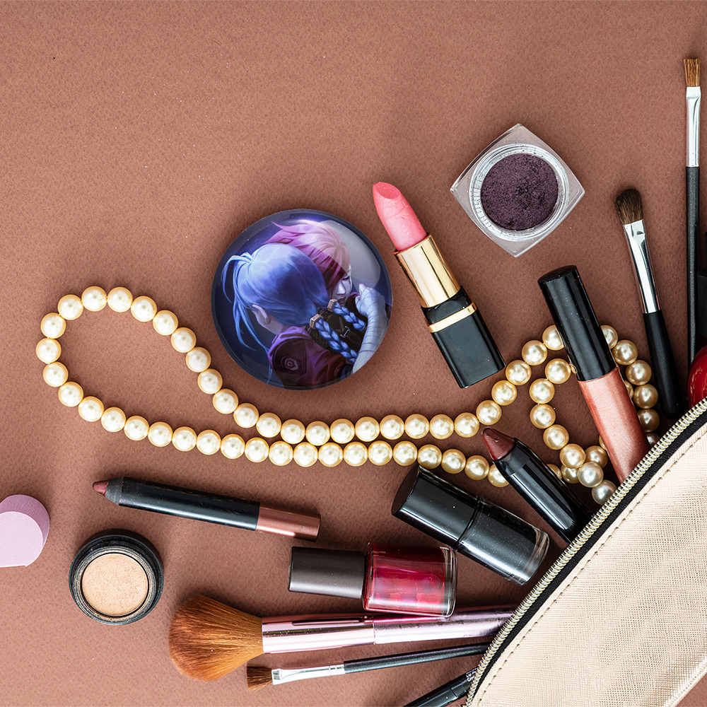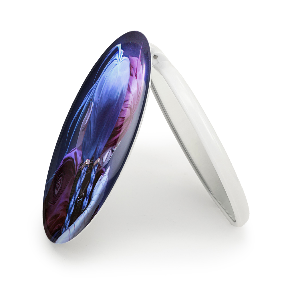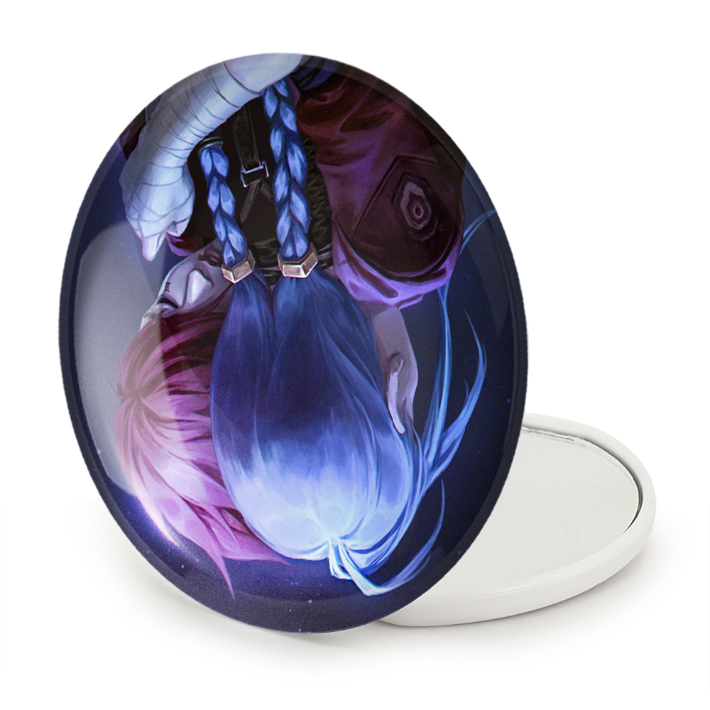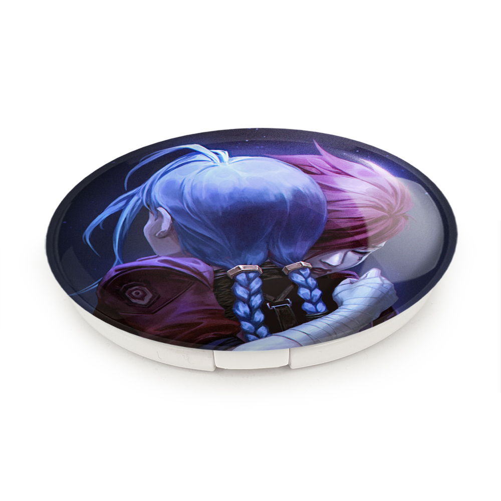 آینه های تاشو وی و جینکس آرکین (Arcane) خندالو، از جنس پلاستیک فشرده ABS تولید شده و به رنگ سفید می باشد. یکی از آینه ها ابعاد واقعی را نشان داده و دیگری با قابلیت بزرگنمایی، جزئیات را بهتر نمایش می دهد. ابعاد هر یک از آینه ها، دایره ای به قطر 7.5 سانت می باشد که نه خیلی بزرگ و غیر قابل استفاده در کیف آرایشی ست و نه خیلی کوچک که تصویر خاصی در آن مشاهده نشود. آینه تاشو وی و جینکس آرکین (Arcane) سایزی استاندارد و کارآمد دارد و در هر کیفی جا میگیرد. چاپ طرح بوسیله چاپگرهای دیجیتال شش رنگ با شفافیت و کیفیتی مثال زدنی بر روی یک وجه از بدنه ی آینه انجام گرفته و با روکش لمینت حرارتی پوشیده شده که در مقابل آسیب و خط و خش مقاوم بوده و کیفیت بالایی دارد. درب آینه بوسیله قفل بدنه ی آن، باز نمی ماند و کاملا بسته می شود و مناسب قرار گیری در کیف لوازم آرایش و کیف های کوچک دستی نیز هست. آینه های تاشو وی و جینکس آرکین (Arcane) خندالو با تنوع طرحی بسیار بالا، سلیقه هر نوع مخاطبی را تامین میکند.