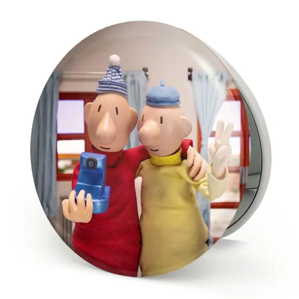 آینه های تاشو پت و مت خندالو، از جنس پلاستیک فشرده ABS تولید شده و به رنگ سفید می باشد. یکی از آینه ها ابعاد واقعی را نشان داده و دیگری با قابلیت بزرگنمایی، جزئیات را بهتر نمایش می دهد.