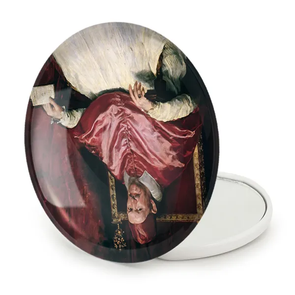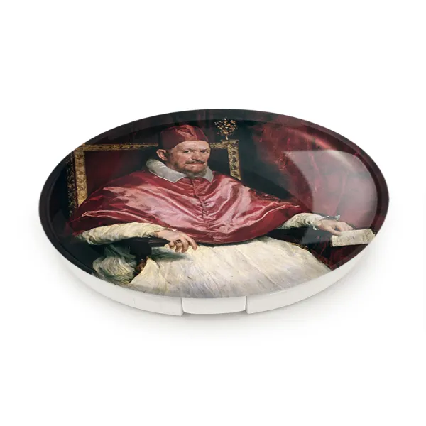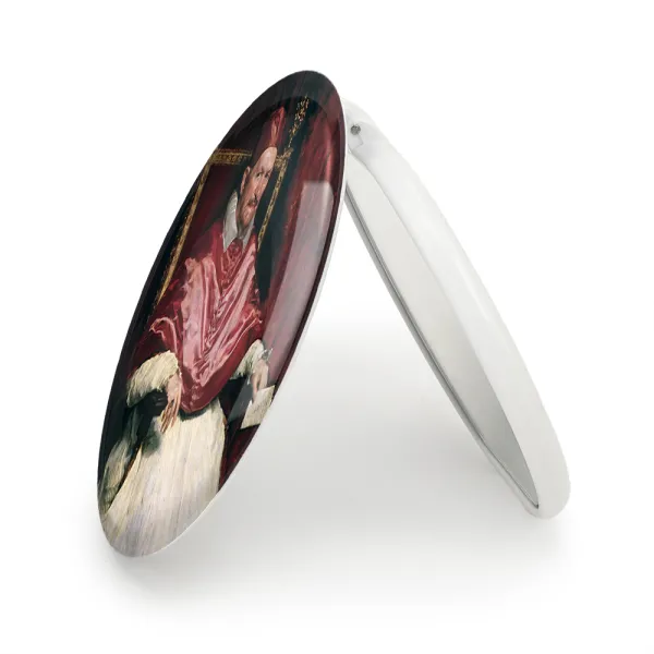 آینه های تاشو پرتره پاپ دیه گو ولاسکس خندالو، از جنس پلاستیک فشرده ABS تولید شده و به رنگ سفید می باشد. یکی از آینه ها ابعاد واقعی را نشان داده و دیگری با قابلیت بزرگنمایی، جزئیات را بهتر نمایش می دهد. ابعاد هر یک از آینه ها، دایره ای به قطر 7.5 سانت می باشد که نه خیلی بزرگ و غیر قابل استفاده در کیف آرایشی ست و نه خیلی کوچک که تصویر خاصی در آن مشاهده نشود. آینه تاشو پرتره پاپ دیه گو ولاسکس سایزی استاندارد و کارآمد دارد و در هر کیفی جا میگیرد. چاپ طرح بوسیله چاپگرهای دیجیتال شش رنگ با شفافیت و کیفیتی مثال زدنی بر روی یک وجه از بدنه ی آینه انجام گرفته و با روکش لمینت حرارتی پوشیده شده که در مقابل آسیب و خط و خش مقاوم بوده و کیفیت بالایی دارد. درب آینه بوسیله قفل بدنه ی آن، باز نمی ماند و کاملا بسته می شود و مناسب قرار گیری در کیف لوازم آرایش و کیف های کوچک دستی نیز هست. آینه های تاشو پرتره پاپ دیه گو ولاسکس خندالو با تنوع طرحی بسیار بالا، سلیقه هر نوع مخاطبی را تامین میکند.