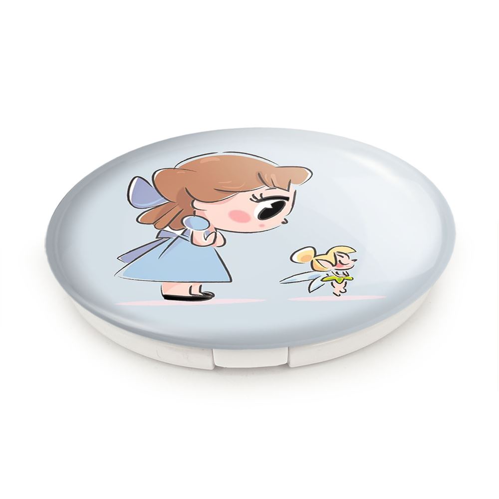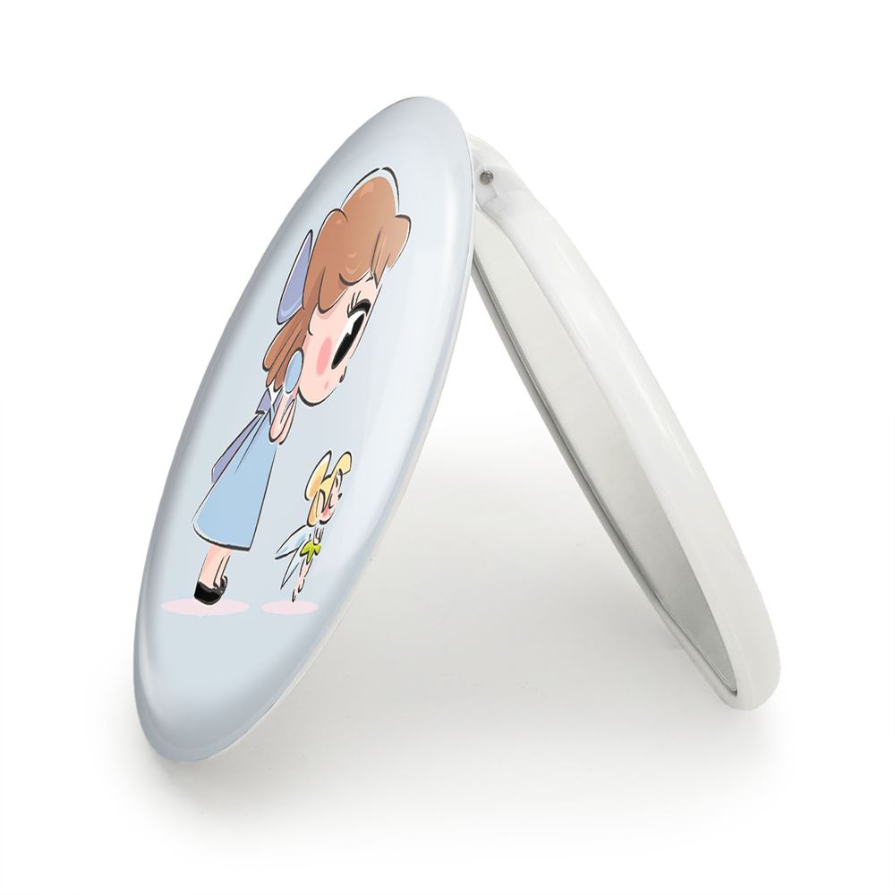 آینه های تاشو پرنسس دیزنی وندی خندالو، از جنس پلاستیک فشرده ABS تولید شده و به رنگ سفید می باشد. یکی از آینه ها ابعاد واقعی را نشان داده و دیگری با قابلیت بزرگنمایی، جزئیات را بهتر نمایش می دهد. ابعاد هر یک از آینه ها، دایره ای به قطر 7.5 سانت می باشد که نه خیلی بزرگ و غیر قابل استفاده در کیف آرایشی ست و نه خیلی کوچک که تصویر خاصی در آن مشاهده نشود. آینه تاشو پرنسس دیزنی وندی سایزی استاندارد و کارآمد دارد و در هر کیفی جا میگیرد. چاپ طرح بوسیله چاپگرهای دیجیتال شش رنگ با شفافیت و کیفیتی مثال زدنی بر روی یک وجه از بدنه ی آینه انجام گرفته و با روکش لمینت حرارتی پوشیده شده که در مقابل آسیب و خط و خش مقاوم بوده و کیفیت بالایی دارد. درب آینه بوسیله قفل بدنه ی آن، باز نمی ماند و کاملا بسته می شود و مناسب قرار گیری در کیف لوازم آرایش و کیف های کوچک دستی نیز هست. آینه های تاشو پرنسس دیزنی وندی خندالو با تنوع طرحی بسیار بالا، سلیقه هر نوع مخاطبی را تامین میکند.