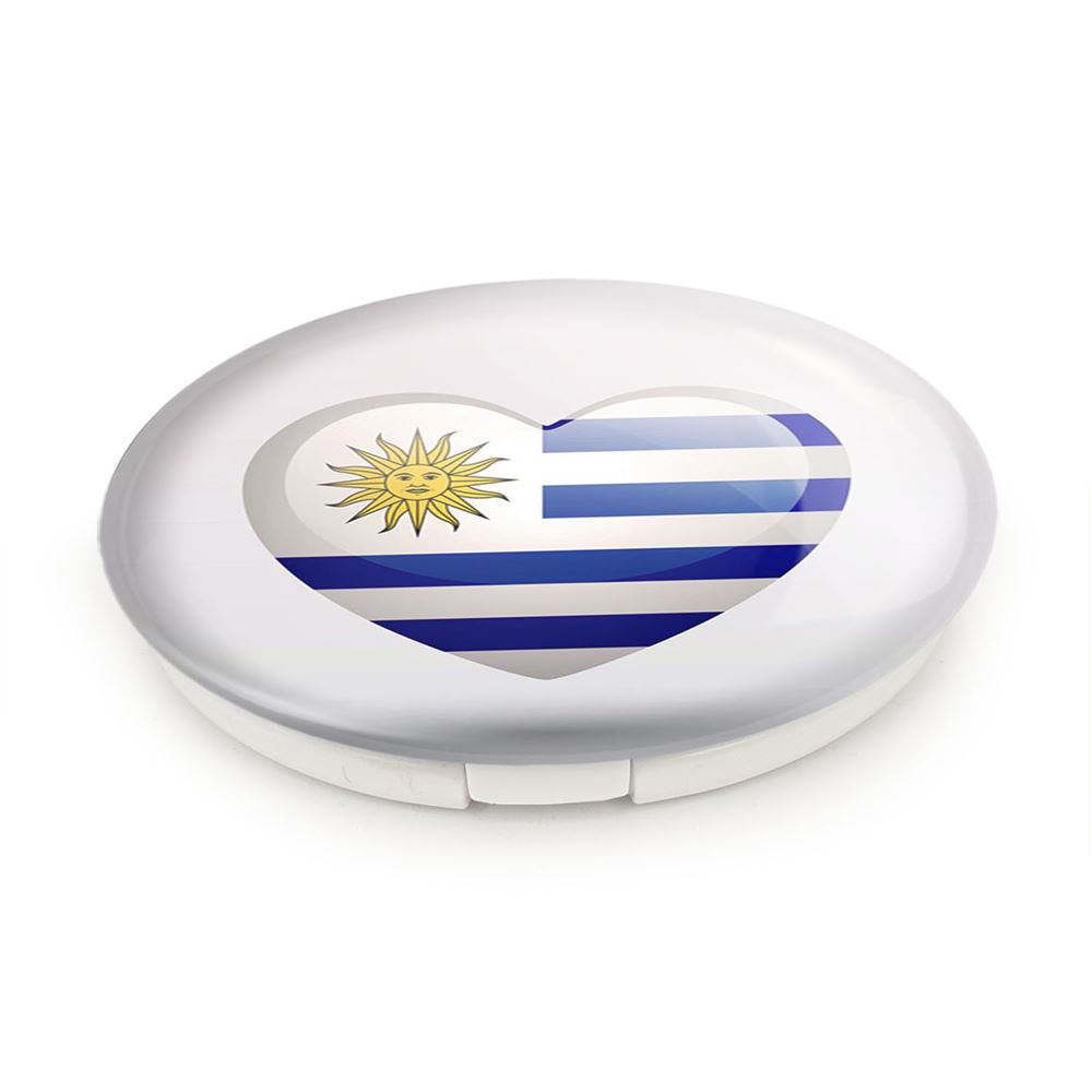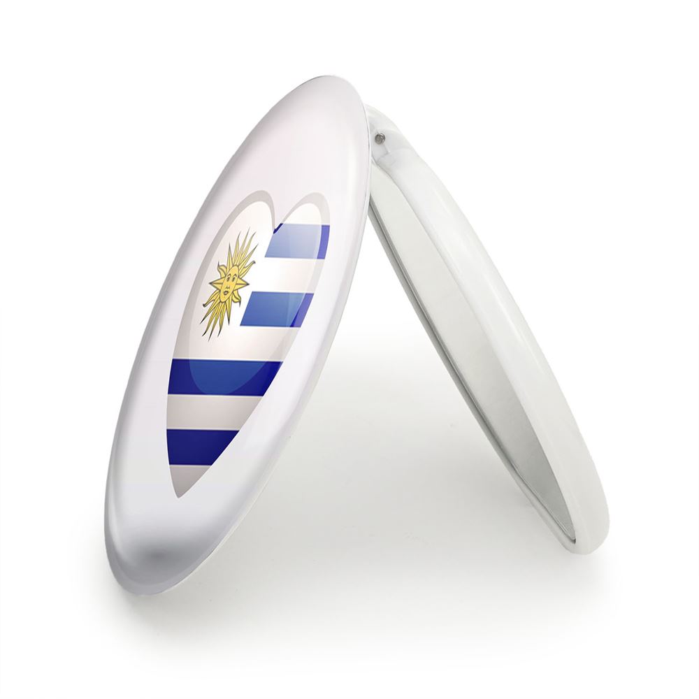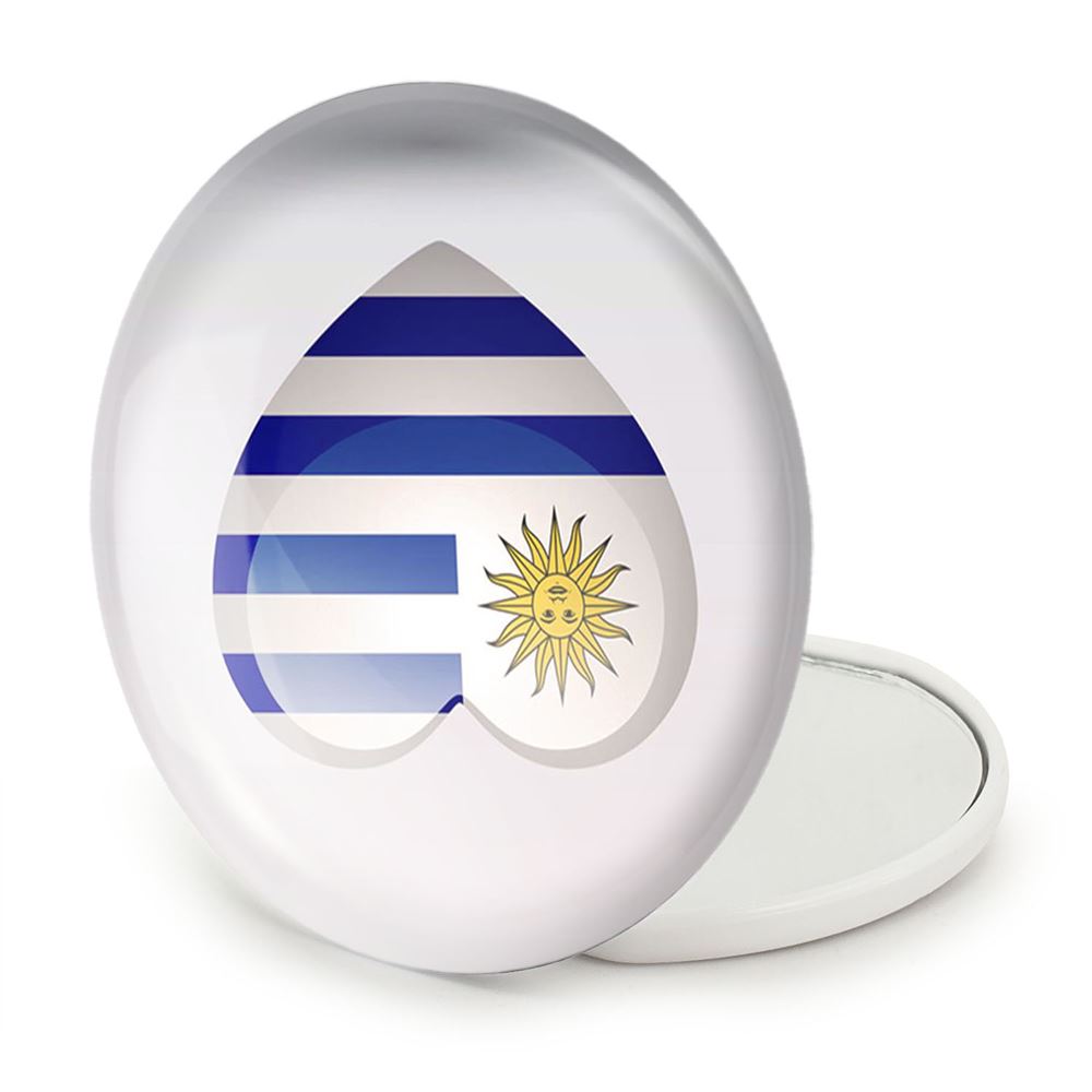 آینه های تاشو پرچم اروگوئه خندالو، از جنس پلاستیک فشرده ABS تولید شده و به رنگ سفید می باشد. یکی از آینه ها ابعاد واقعی را نشان داده و دیگری با قابلیت بزرگنمایی، جزئیات را بهتر نمایش می دهد. ابعاد هر یک از آینه ها، دایره ای به قطر 7.5 سانت می باشد که نه خیلی بزرگ و غیر قابل استفاده در کیف آرایشی ست و نه خیلی کوچک که تصویر خاصی در آن مشاهده نشود. آینه تاشو پرچم اروگوئه سایزی استاندارد و کارآمد دارد و در هر کیفی جا میگیرد. چاپ طرح بوسیله چاپگرهای دیجیتال شش رنگ با شفافیت و کیفیتی مثال زدنی بر روی یک وجه از بدنه ی آینه انجام گرفته و با روکش لمینت حرارتی پوشیده شده که در مقابل آسیب و خط و خش مقاوم بوده و کیفیت بالایی دارد. درب آینه بوسیله قفل بدنه ی آن، باز نمی ماند و کاملا بسته می شود و مناسب قرار گیری در کیف لوازم آرایش و کیف های کوچک دستی نیز هست. آینه های تاشو پرچم اروگوئه خندالو با تنوع طرحی بسیار بالا، سلیقه هر نوع مخاطبی را تامین میکند.