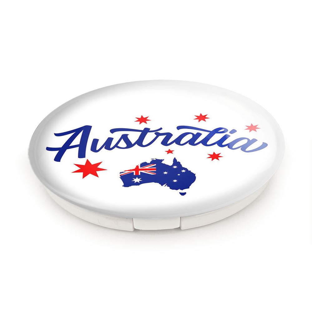 آینه های تاشو پرچم استرالیا خندالو، از جنس پلاستیک فشرده ABS تولید شده و به رنگ سفید می باشد. یکی از آینه ها ابعاد واقعی را نشان داده و دیگری با قابلیت بزرگنمایی، جزئیات را بهتر نمایش می دهد. ابعاد هر یک از آینه ها، دایره ای به قطر 7.5 سانت می باشد که نه خیلی بزرگ و غیر قابل استفاده در کیف آرایشی ست و نه خیلی کوچک که تصویر خاصی در آن مشاهده نشود. آینه تاشو پرچم استرالیا سایزی استاندارد و کارآمد دارد و در هر کیفی جا میگیرد. چاپ طرح بوسیله چاپگرهای دیجیتال شش رنگ با شفافیت و کیفیتی مثال زدنی بر روی یک وجه از بدنه ی آینه انجام گرفته و با روکش لمینت حرارتی پوشیده شده که در مقابل آسیب و خط و خش مقاوم بوده و کیفیت بالایی دارد. درب آینه بوسیله قفل بدنه ی آن، باز نمی ماند و کاملا بسته می شود و مناسب قرار گیری در کیف لوازم آرایش و کیف های کوچک دستی نیز هست. آینه های تاشو پرچم استرالیا خندالو با تنوع طرحی بسیار بالا، سلیقه هر نوع مخاطبی را تامین میکند.