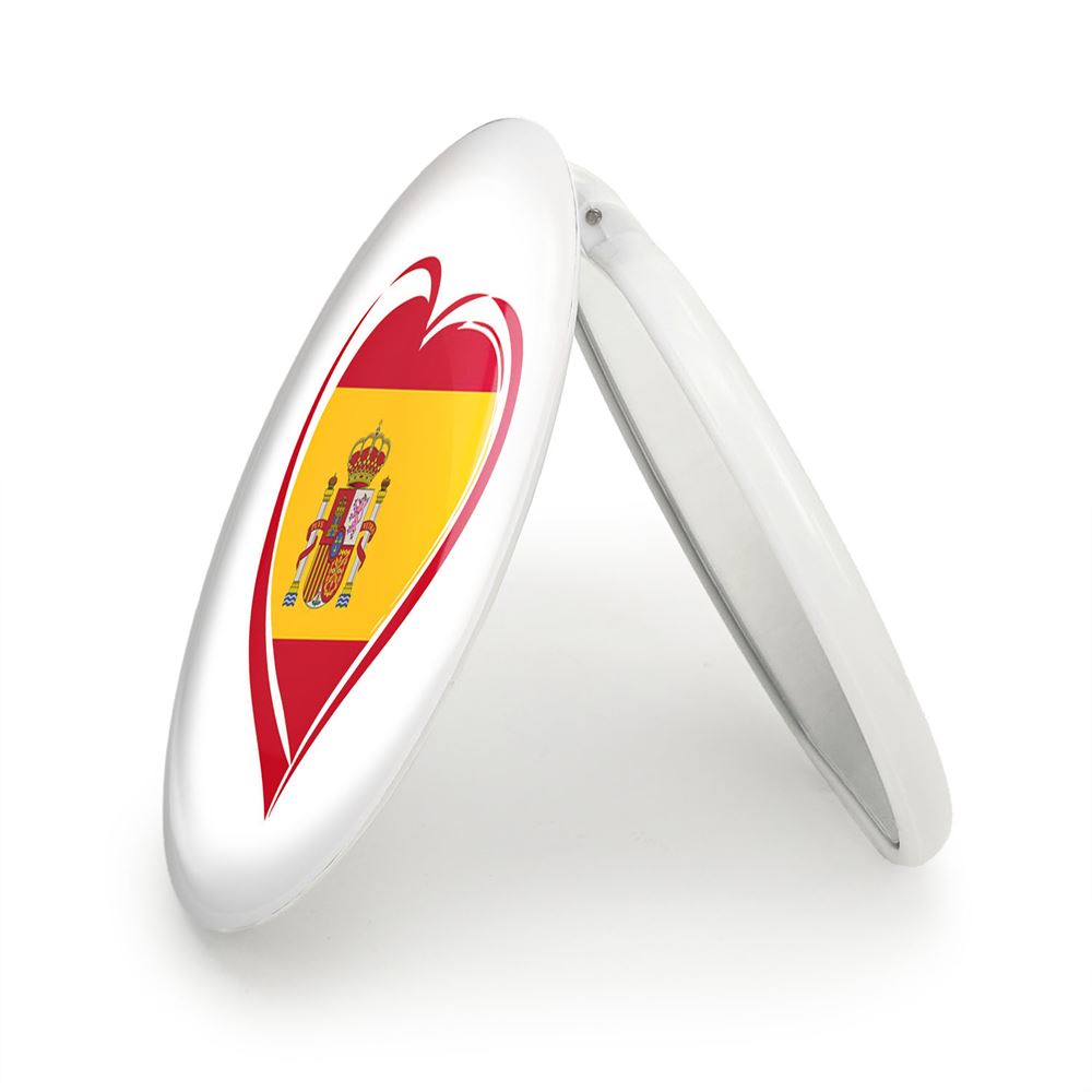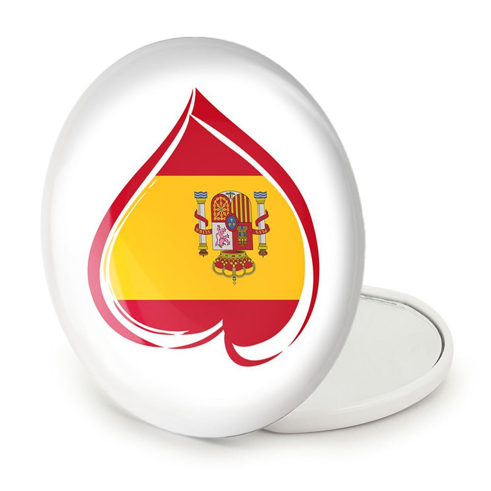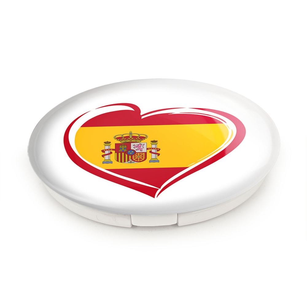 آینه های تاشو پرچم اسپانیا خندالو، از جنس پلاستیک فشرده ABS تولید شده و به رنگ سفید می باشد. یکی از آینه ها ابعاد واقعی را نشان داده و دیگری با قابلیت بزرگنمایی، جزئیات را بهتر نمایش می دهد. ابعاد هر یک از آینه ها، دایره ای به قطر 7.5 سانت می باشد که نه خیلی بزرگ و غیر قابل استفاده در کیف آرایشی ست و نه خیلی کوچک که تصویر خاصی در آن مشاهده نشود. آینه تاشو پرچم اسپانیا سایزی استاندارد و کارآمد دارد و در هر کیفی جا میگیرد. چاپ طرح بوسیله چاپگرهای دیجیتال شش رنگ با شفافیت و کیفیتی مثال زدنی بر روی یک وجه از بدنه ی آینه انجام گرفته و با روکش لمینت حرارتی پوشیده شده که در مقابل آسیب و خط و خش مقاوم بوده و کیفیت بالایی دارد. درب آینه بوسیله قفل بدنه ی آن، باز نمی ماند و کاملا بسته می شود و مناسب قرار گیری در کیف لوازم آرایش و کیف های کوچک دستی نیز هست. آینه های تاشو پرچم اسپانیا خندالو با تنوع طرحی بسیار بالا، سلیقه هر نوع مخاطبی را تامین میکند.