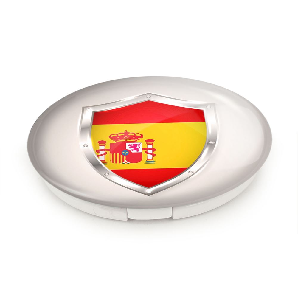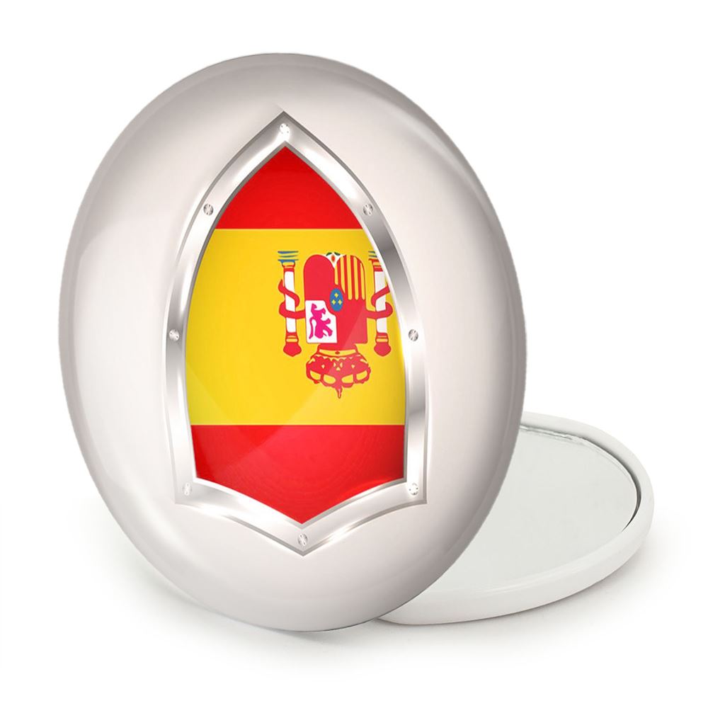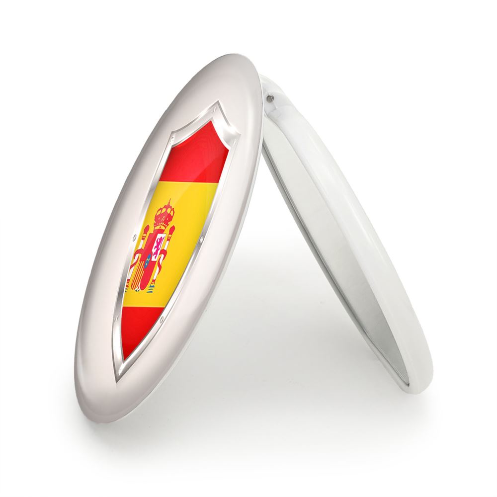 آینه های تاشو پرچم اسپانیا خندالو، از جنس پلاستیک فشرده ABS تولید شده و به رنگ سفید می باشد. یکی از آینه ها ابعاد واقعی را نشان داده و دیگری با قابلیت بزرگنمایی، جزئیات را بهتر نمایش می دهد. ابعاد هر یک از آینه ها، دایره ای به قطر 7.5 سانت می باشد که نه خیلی بزرگ و غیر قابل استفاده در کیف آرایشی ست و نه خیلی کوچک که تصویر خاصی در آن مشاهده نشود. آینه تاشو پرچم اسپانیا سایزی استاندارد و کارآمد دارد و در هر کیفی جا میگیرد. چاپ طرح بوسیله چاپگرهای دیجیتال شش رنگ با شفافیت و کیفیتی مثال زدنی بر روی یک وجه از بدنه ی آینه انجام گرفته و با روکش لمینت حرارتی پوشیده شده که در مقابل آسیب و خط و خش مقاوم بوده و کیفیت بالایی دارد. درب آینه بوسیله قفل بدنه ی آن، باز نمی ماند و کاملا بسته می شود و مناسب قرار گیری در کیف لوازم آرایش و کیف های کوچک دستی نیز هست. آینه های تاشو پرچم اسپانیا خندالو با تنوع طرحی بسیار بالا، سلیقه هر نوع مخاطبی را تامین میکند.