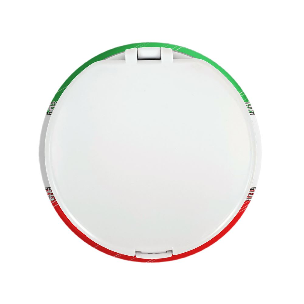 آینه های تاشو پرچم ایران خندالو، از جنس پلاستیک فشرده ABS تولید شده و به رنگ سفید می باشد. یکی از آینه ها ابعاد واقعی را نشان داده و دیگری با قابلیت بزرگنمایی، جزئیات را بهتر نمایش می دهد.