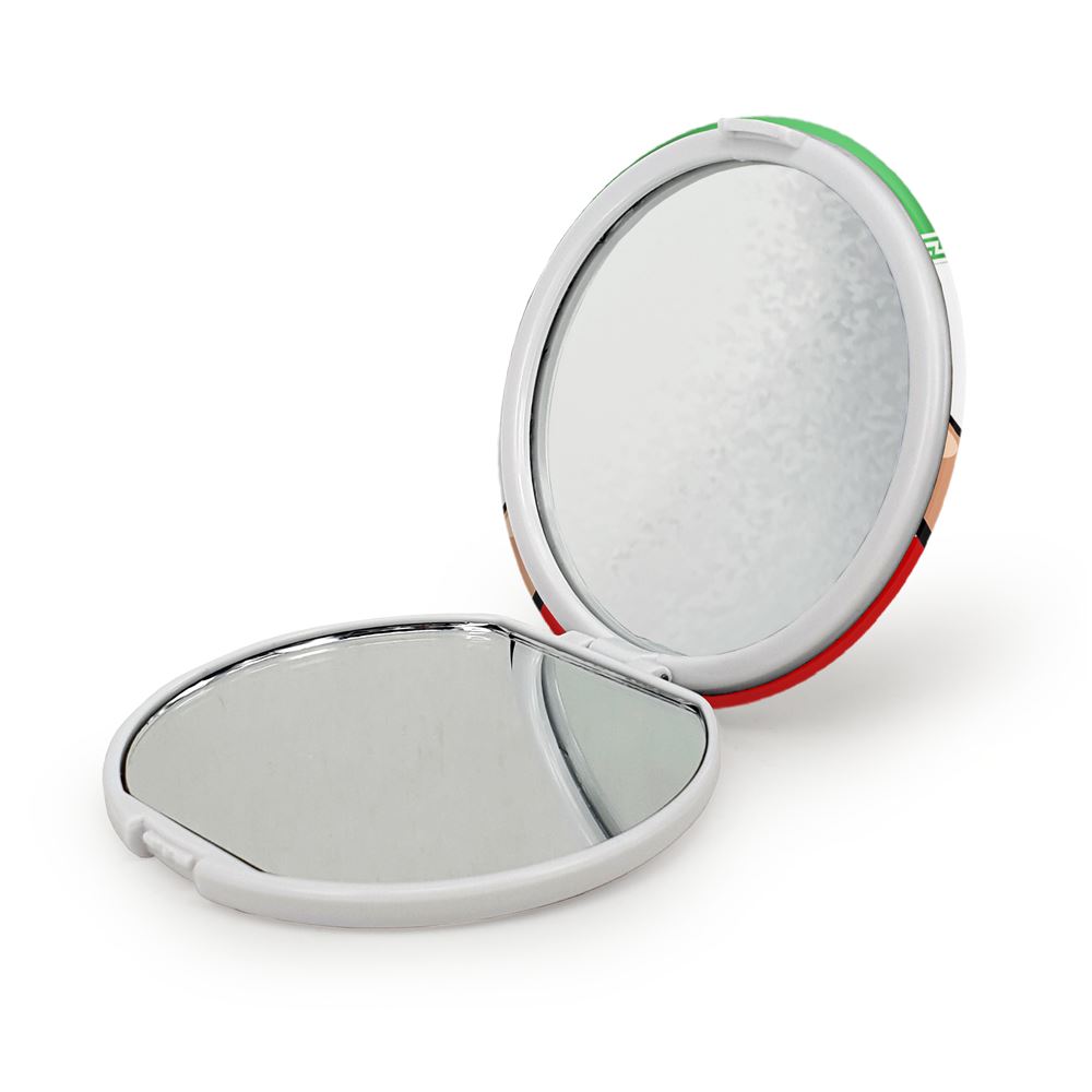 آینه های تاشو پرچم ایران خندالو، از جنس پلاستیک فشرده ABS تولید شده و به رنگ سفید می باشد. یکی از آینه ها ابعاد واقعی را نشان داده و دیگری با قابلیت بزرگنمایی، جزئیات را بهتر نمایش می دهد.