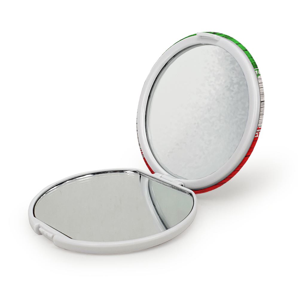 آینه های تاشو پرچم ایران خندالو، از جنس پلاستیک فشرده ABS تولید شده و به رنگ سفید می باشد. یکی از آینه ها ابعاد واقعی را نشان داده و دیگری با قابلیت بزرگنمایی، جزئیات را بهتر نمایش می دهد.