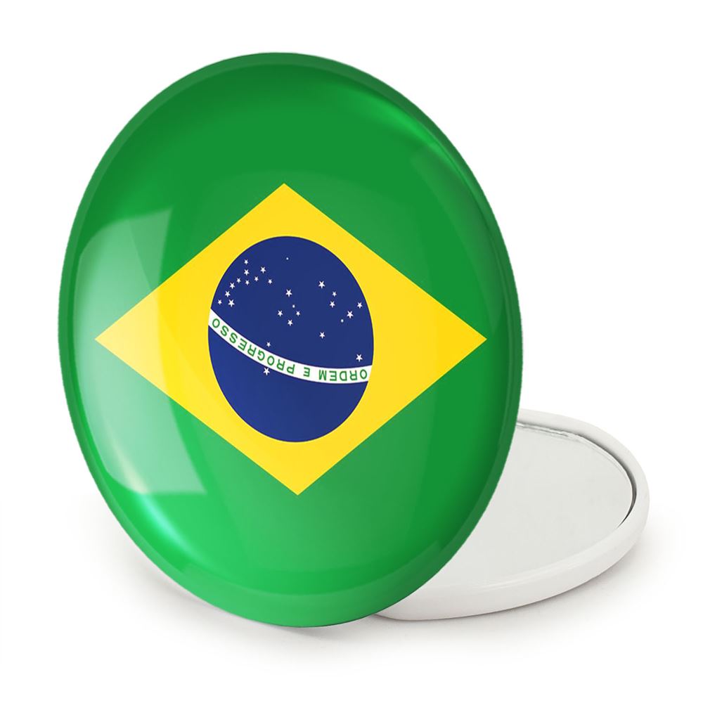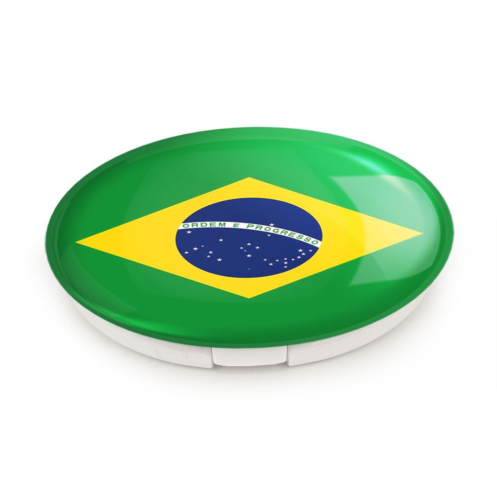آینه های تاشو پرچم برزیل خندالو، از جنس پلاستیک فشرده ABS تولید شده و به رنگ سفید می باشد. یکی از آینه ها ابعاد واقعی را نشان داده و دیگری با قابلیت بزرگنمایی، جزئیات را بهتر نمایش می دهد. ابعاد هر یک از آینه ها، دایره ای به قطر 7.5 سانت می باشد که نه خیلی بزرگ و غیر قابل استفاده در کیف آرایشی ست و نه خیلی کوچک که تصویر خاصی در آن مشاهده نشود. آینه تاشو پرچم برزیل سایزی استاندارد و کارآمد دارد و در هر کیفی جا میگیرد. چاپ طرح بوسیله چاپگرهای دیجیتال شش رنگ با شفافیت و کیفیتی مثال زدنی بر روی یک وجه از بدنه ی آینه انجام گرفته و با روکش لمینت حرارتی پوشیده شده که در مقابل آسیب و خط و خش مقاوم بوده و کیفیت بالایی دارد. درب آینه بوسیله قفل بدنه ی آن، باز نمی ماند و کاملا بسته می شود و مناسب قرار گیری در کیف لوازم آرایش و کیف های کوچک دستی نیز هست. آینه های تاشو پرچم برزیل خندالو با تنوع طرحی بسیار بالا، سلیقه هر نوع مخاطبی را تامین میکند.
