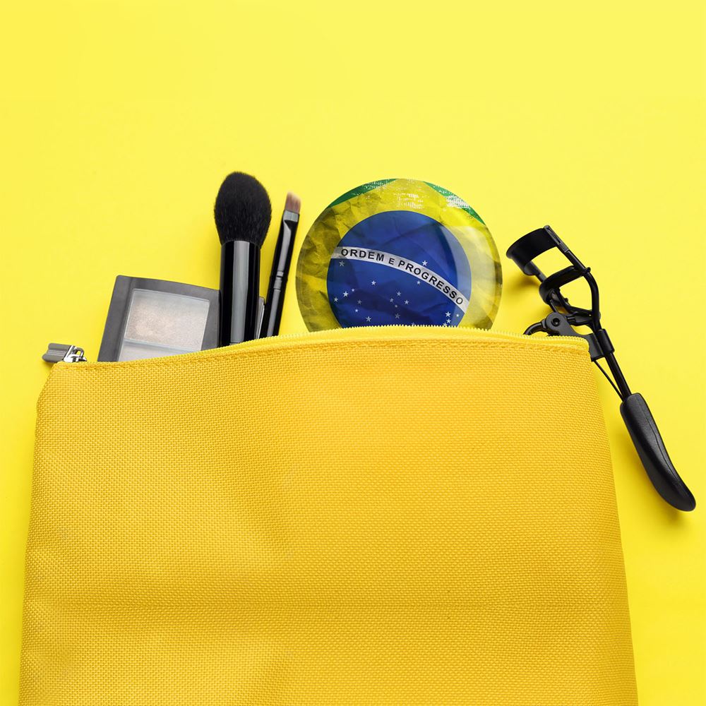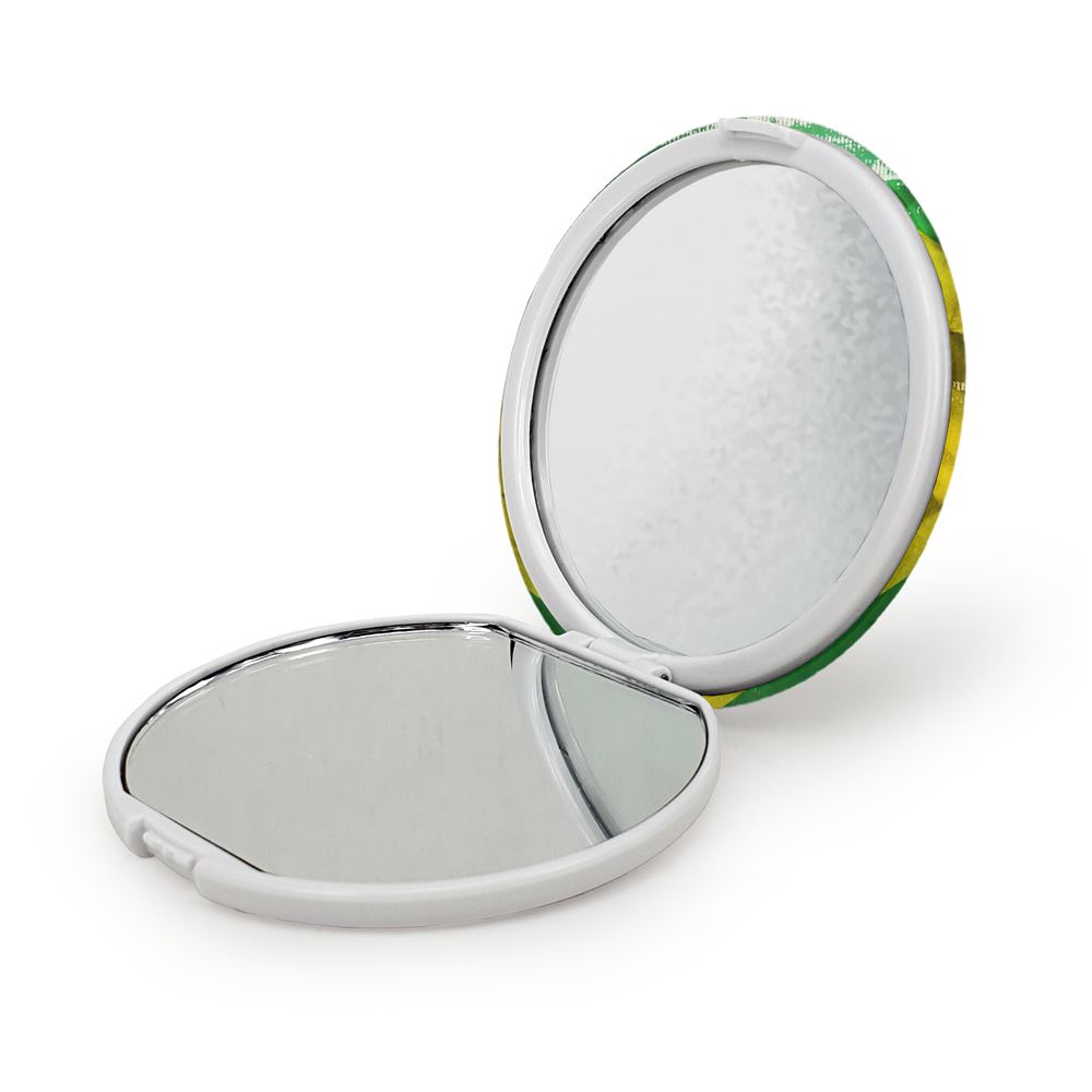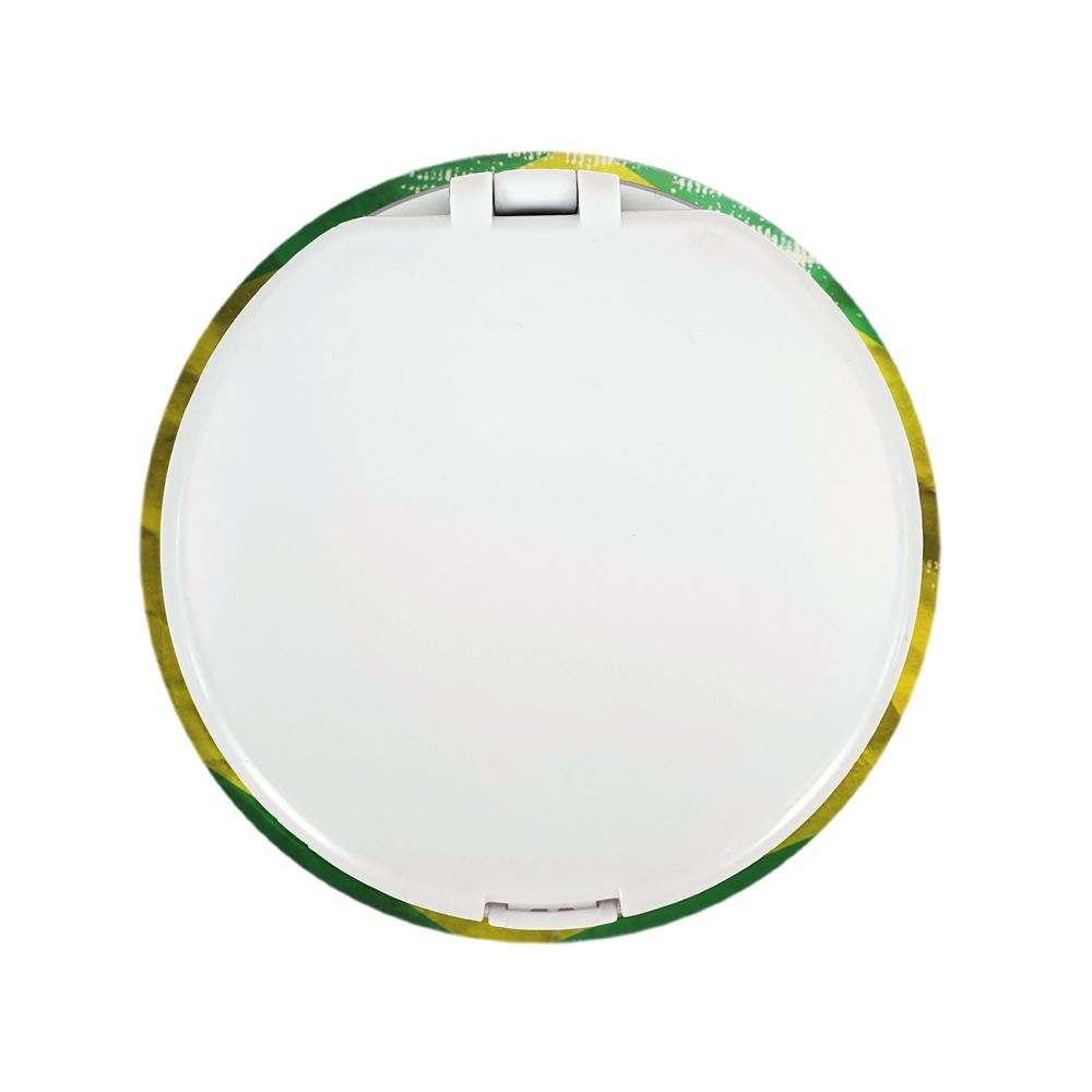 آینه های تاشو پرچم برزیل خندالو، از جنس پلاستیک فشرده ABS تولید شده و به رنگ سفید می باشد. یکی از آینه ها ابعاد واقعی را نشان داده و دیگری با قابلیت بزرگنمایی، جزئیات را بهتر نمایش می دهد. ابعاد هر یک از آینه ها، دایره ای به قطر 7.5 سانت می باشد که نه خیلی بزرگ و غیر قابل استفاده در کیف آرایشی ست و نه خیلی کوچک که تصویر خاصی در آن مشاهده نشود. آینه تاشو پرچم برزیل سایزی استاندارد و کارآمد دارد و در هر کیفی جا میگیرد. چاپ طرح بوسیله چاپگرهای دیجیتال شش رنگ با شفافیت و کیفیتی مثال زدنی بر روی یک وجه از بدنه ی آینه انجام گرفته و با روکش لمینت حرارتی پوشیده شده که در مقابل آسیب و خط و خش مقاوم بوده و کیفیت بالایی دارد. درب آینه بوسیله قفل بدنه ی آن، باز نمی ماند و کاملا بسته می شود و مناسب قرار گیری در کیف لوازم آرایش و کیف های کوچک دستی نیز هست. آینه های تاشو پرچم برزیل خندالو با تنوع طرحی بسیار بالا، سلیقه هر نوع مخاطبی را تامین میکند.