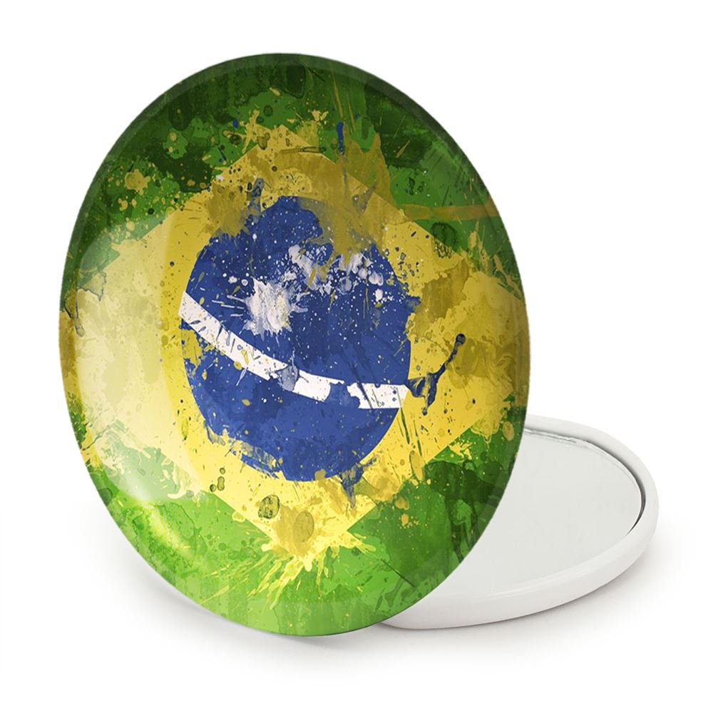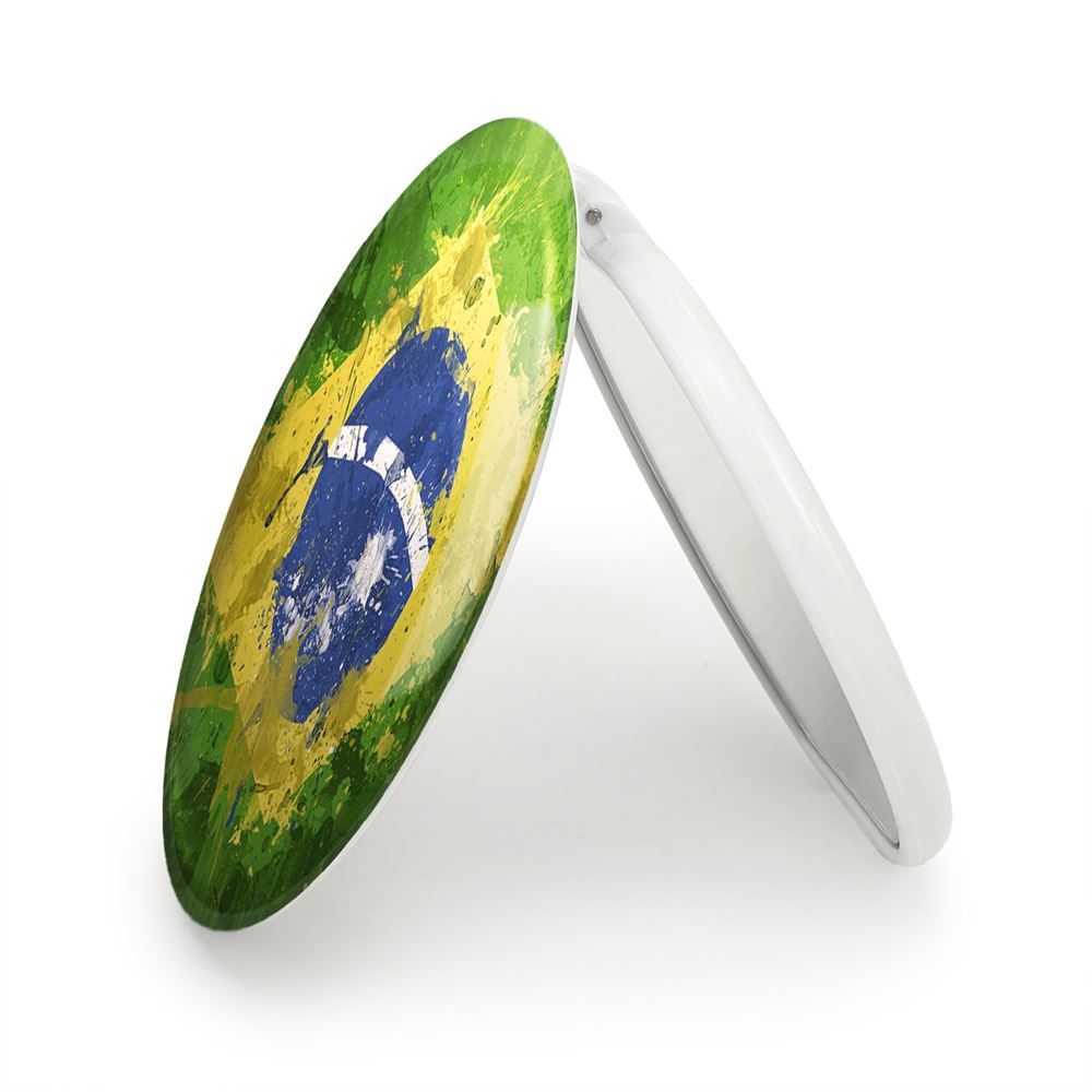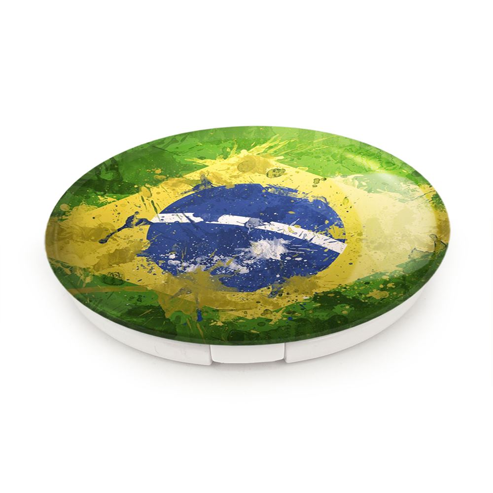 آینه های تاشو پرچم برزیل خندالو، از جنس پلاستیک فشرده ABS تولید شده و به رنگ سفید می باشد. یکی از آینه ها ابعاد واقعی را نشان داده و دیگری با قابلیت بزرگنمایی، جزئیات را بهتر نمایش می دهد. ابعاد هر یک از آینه ها، دایره ای به قطر 7.5 سانت می باشد که نه خیلی بزرگ و غیر قابل استفاده در کیف آرایشی ست و نه خیلی کوچک که تصویر خاصی در آن مشاهده نشود. آینه تاشو پرچم برزیل سایزی استاندارد و کارآمد دارد و در هر کیفی جا میگیرد. چاپ طرح بوسیله چاپگرهای دیجیتال شش رنگ با شفافیت و کیفیتی مثال زدنی بر روی یک وجه از بدنه ی آینه انجام گرفته و با روکش لمینت حرارتی پوشیده شده که در مقابل آسیب و خط و خش مقاوم بوده و کیفیت بالایی دارد. درب آینه بوسیله قفل بدنه ی آن، باز نمی ماند و کاملا بسته می شود و مناسب قرار گیری در کیف لوازم آرایش و کیف های کوچک دستی نیز هست. آینه های تاشو پرچم برزیل خندالو با تنوع طرحی بسیار بالا، سلیقه هر نوع مخاطبی را تامین میکند.
