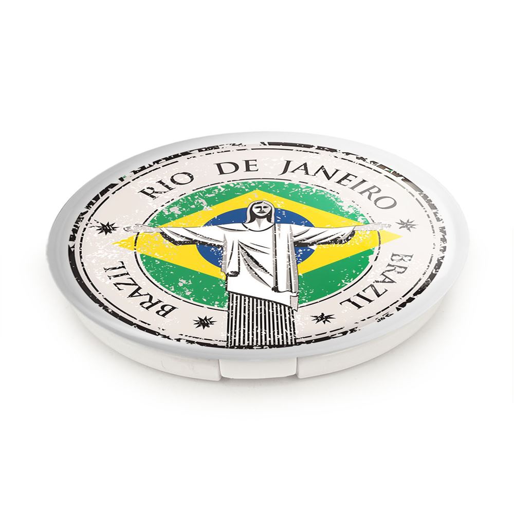 آینه های تاشو پرچم برزیل خندالو، از جنس پلاستیک فشرده ABS تولید شده و به رنگ سفید می باشد. یکی از آینه ها ابعاد واقعی را نشان داده و دیگری با قابلیت بزرگنمایی، جزئیات را بهتر نمایش می دهد. ابعاد هر یک از آینه ها، دایره ای به قطر 7.5 سانت می باشد که نه خیلی بزرگ و غیر قابل استفاده در کیف آرایشی ست و نه خیلی کوچک که تصویر خاصی در آن مشاهده نشود. آینه تاشو پرچم برزیل سایزی استاندارد و کارآمد دارد و در هر کیفی جا میگیرد. چاپ طرح بوسیله چاپگرهای دیجیتال شش رنگ با شفافیت و کیفیتی مثال زدنی بر روی یک وجه از بدنه ی آینه انجام گرفته و با روکش لمینت حرارتی پوشیده شده که در مقابل آسیب و خط و خش مقاوم بوده و کیفیت بالایی دارد. درب آینه بوسیله قفل بدنه ی آن، باز نمی ماند و کاملا بسته می شود و مناسب قرار گیری در کیف لوازم آرایش و کیف های کوچک دستی نیز هست. آینه های تاشو پرچم برزیل خندالو با تنوع طرحی بسیار بالا، سلیقه هر نوع مخاطبی را تامین میکند.