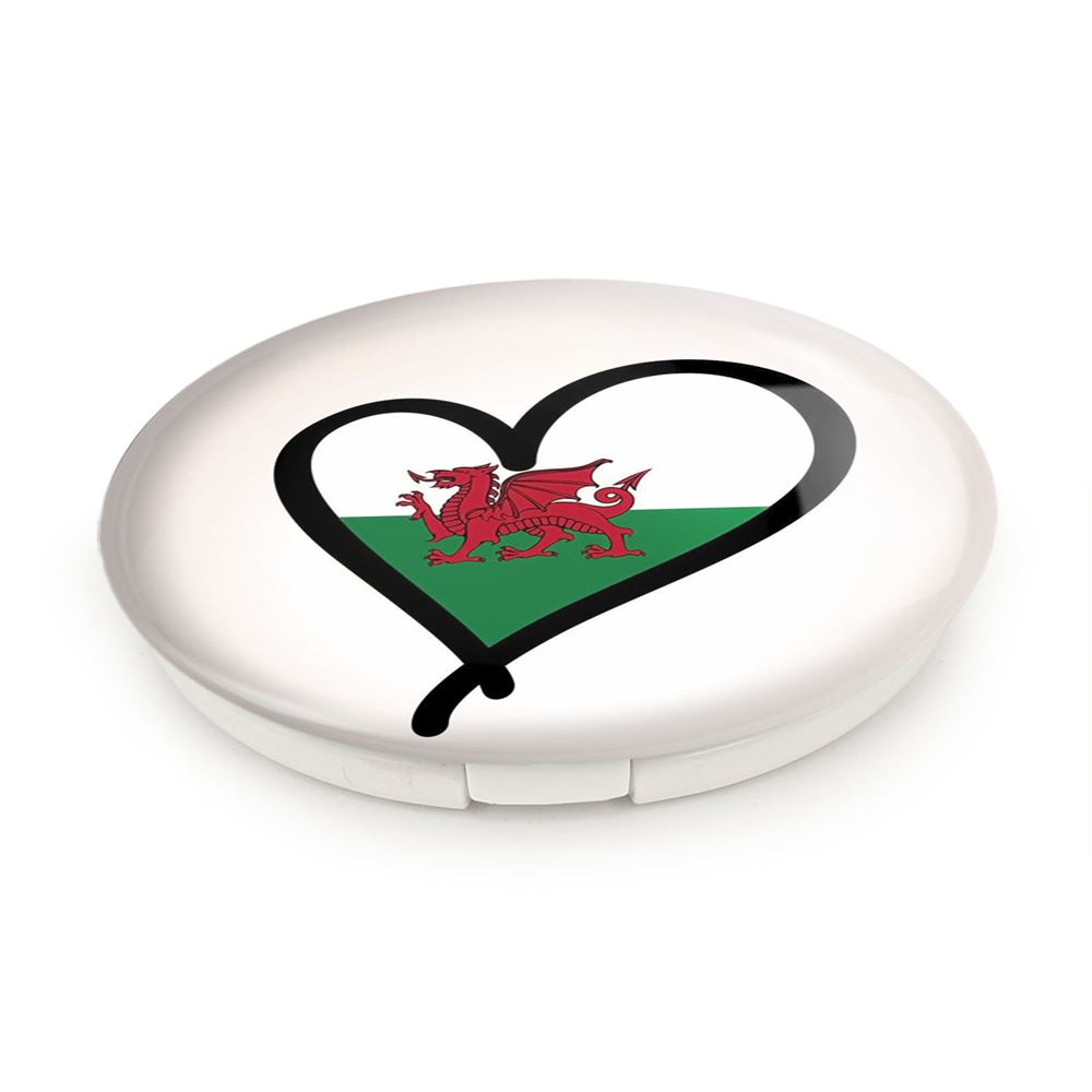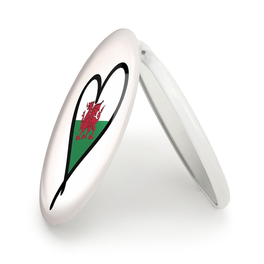 آینه های تاشو پرچم ولز خندالو، از جنس پلاستیک فشرده ABS تولید شده و به رنگ سفید می باشد. یکی از آینه ها ابعاد واقعی را نشان داده و دیگری با قابلیت بزرگنمایی، جزئیات را بهتر نمایش می دهد. ابعاد هر یک از آینه ها، دایره ای به قطر 7.5 سانت می باشد که نه خیلی بزرگ و غیر قابل استفاده در کیف آرایشی ست و نه خیلی کوچک که تصویر خاصی در آن مشاهده نشود. آینه تاشو پرچم ولز سایزی استاندارد و کارآمد دارد و در هر کیفی جا میگیرد. چاپ طرح بوسیله چاپگرهای دیجیتال شش رنگ با شفافیت و کیفیتی مثال زدنی بر روی یک وجه از بدنه ی آینه انجام گرفته و با روکش لمینت حرارتی پوشیده شده که در مقابل آسیب و خط و خش مقاوم بوده و کیفیت بالایی دارد. درب آینه بوسیله قفل بدنه ی آن، باز نمی ماند و کاملا بسته می شود و مناسب قرار گیری در کیف لوازم آرایش و کیف های کوچک دستی نیز هست. آینه های تاشو پرچم ولز خندالو با تنوع طرحی بسیار بالا، سلیقه هر نوع مخاطبی را تامین میکند.