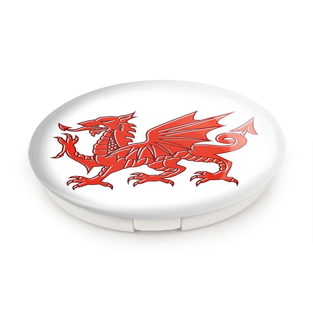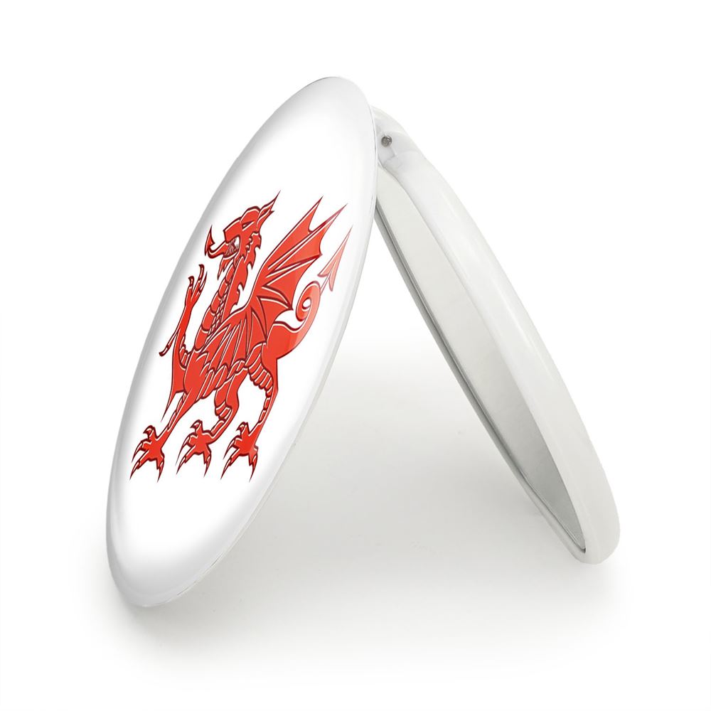 آینه های تاشو پرچم ولز خندالو، از جنس پلاستیک فشرده ABS تولید شده و به رنگ سفید می باشد. یکی از آینه ها ابعاد واقعی را نشان داده و دیگری با قابلیت بزرگنمایی، جزئیات را بهتر نمایش می دهد. ابعاد هر یک از آینه ها، دایره ای به قطر 7.5 سانت می باشد که نه خیلی بزرگ و غیر قابل استفاده در کیف آرایشی ست و نه خیلی کوچک که تصویر خاصی در آن مشاهده نشود. آینه تاشو پرچم ولز سایزی استاندارد و کارآمد دارد و در هر کیفی جا میگیرد. چاپ طرح بوسیله چاپگرهای دیجیتال شش رنگ با شفافیت و کیفیتی مثال زدنی بر روی یک وجه از بدنه ی آینه انجام گرفته و با روکش لمینت حرارتی پوشیده شده که در مقابل آسیب و خط و خش مقاوم بوده و کیفیت بالایی دارد. درب آینه بوسیله قفل بدنه ی آن، باز نمی ماند و کاملا بسته می شود و مناسب قرار گیری در کیف لوازم آرایش و کیف های کوچک دستی نیز هست. آینه های تاشو پرچم ولز خندالو با تنوع طرحی بسیار بالا، سلیقه هر نوع مخاطبی را تامین میکند.