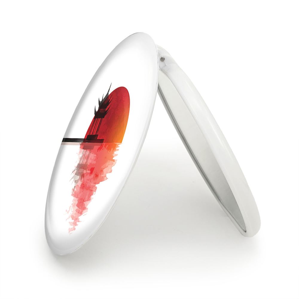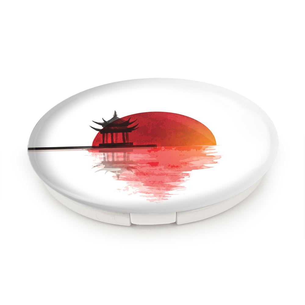 آینه های تاشو پرچم ژاپن خندالو، از جنس پلاستیک فشرده ABS تولید شده و به رنگ سفید می باشد. یکی از آینه ها ابعاد واقعی را نشان داده و دیگری با قابلیت بزرگنمایی، جزئیات را بهتر نمایش می دهد. ابعاد هر یک از آینه ها، دایره ای به قطر 7.5 سانت می باشد که نه خیلی بزرگ و غیر قابل استفاده در کیف آرایشی ست و نه خیلی کوچک که تصویر خاصی در آن مشاهده نشود. آینه تاشو پرچم ژاپن سایزی استاندارد و کارآمد دارد و در هر کیفی جا میگیرد. چاپ طرح بوسیله چاپگرهای دیجیتال شش رنگ با شفافیت و کیفیتی مثال زدنی بر روی یک وجه از بدنه ی آینه انجام گرفته و با روکش لمینت حرارتی پوشیده شده که در مقابل آسیب و خط و خش مقاوم بوده و کیفیت بالایی دارد. درب آینه بوسیله قفل بدنه ی آن، باز نمی ماند و کاملا بسته می شود و مناسب قرار گیری در کیف لوازم آرایش و کیف های کوچک دستی نیز هست. آینه های تاشو پرچم ژاپن خندالو با تنوع طرحی بسیار بالا، سلیقه هر نوع مخاطبی را تامین میکند.