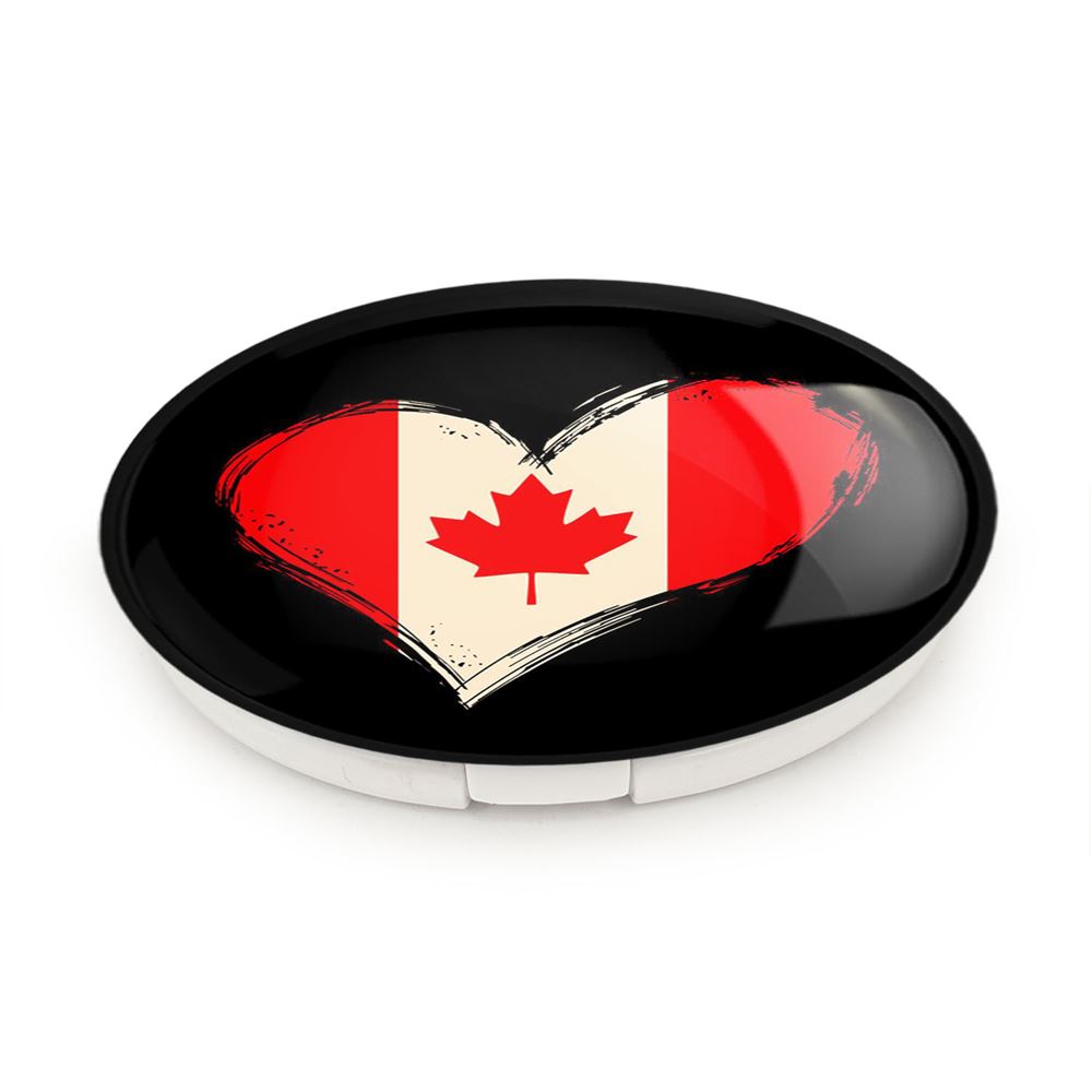 آینه های تاشو پرچم کانادا خندالو، از جنس پلاستیک فشرده ABS تولید شده و به رنگ سفید می باشد. یکی از آینه ها ابعاد واقعی را نشان داده و دیگری با قابلیت بزرگنمایی، جزئیات را بهتر نمایش می دهد.