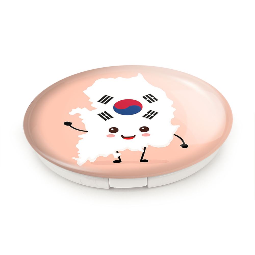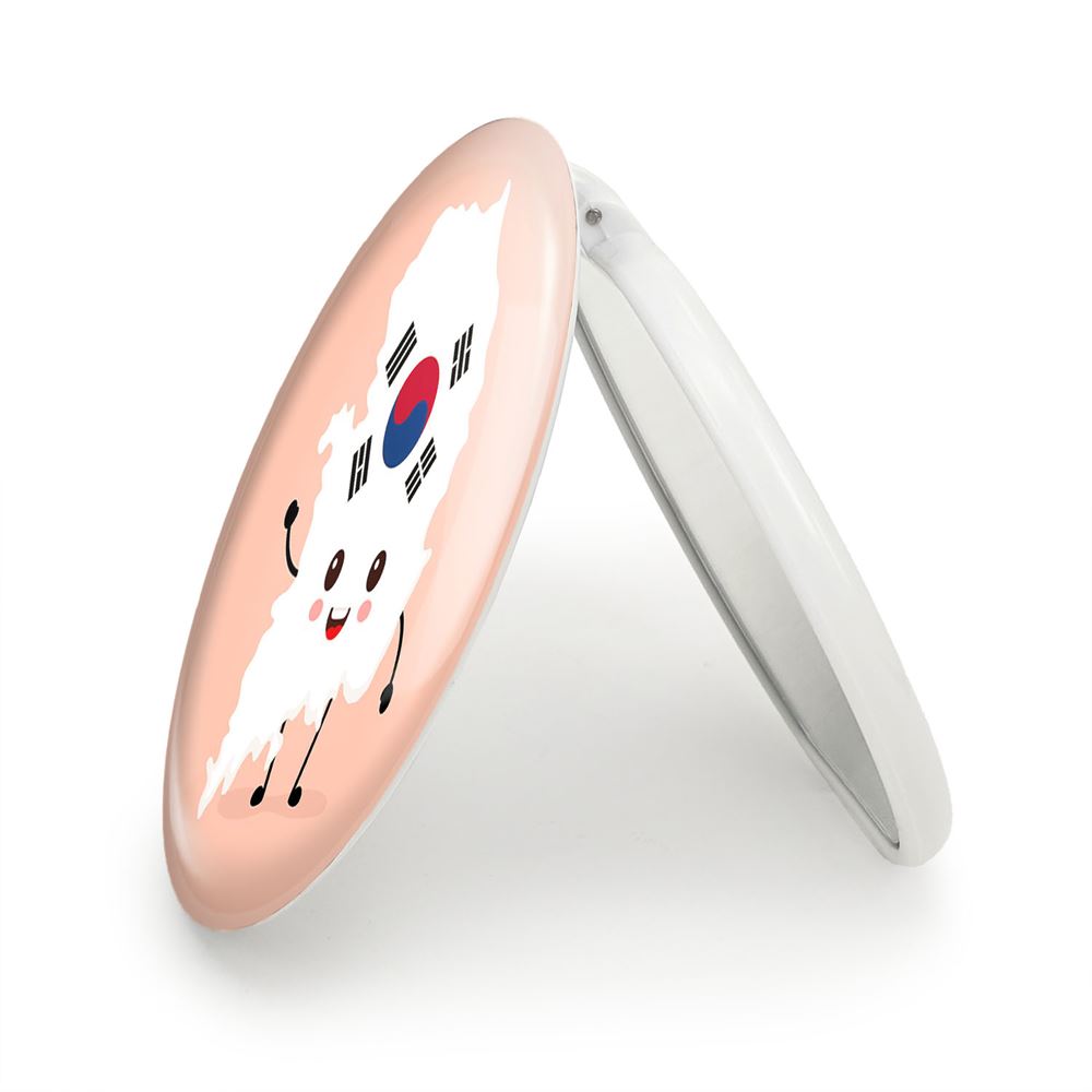 آینه های تاشو پرچم کره جنوبی خندالو، از جنس پلاستیک فشرده ABS تولید شده و به رنگ سفید می باشد. یکی از آینه ها ابعاد واقعی را نشان داده و دیگری با قابلیت بزرگنمایی، جزئیات را بهتر نمایش می دهد. ابعاد هر یک از آینه ها، دایره ای به قطر 7.5 سانت می باشد که نه خیلی بزرگ و غیر قابل استفاده در کیف آرایشی ست و نه خیلی کوچک که تصویر خاصی در آن مشاهده نشود. آینه تاشو پرچم کره جنوبی سایزی استاندارد و کارآمد دارد و در هر کیفی جا میگیرد. چاپ طرح بوسیله چاپگرهای دیجیتال شش رنگ با شفافیت و کیفیتی مثال زدنی بر روی یک وجه از بدنه ی آینه انجام گرفته و با روکش لمینت حرارتی پوشیده شده که در مقابل آسیب و خط و خش مقاوم بوده و کیفیت بالایی دارد. درب آینه بوسیله قفل بدنه ی آن، باز نمی ماند و کاملا بسته می شود و مناسب قرار گیری در کیف لوازم آرایش و کیف های کوچک دستی نیز هست. آینه های تاشو پرچم کره جنوبی خندالو با تنوع طرحی بسیار بالا، سلیقه هر نوع مخاطبی را تامین میکند.
