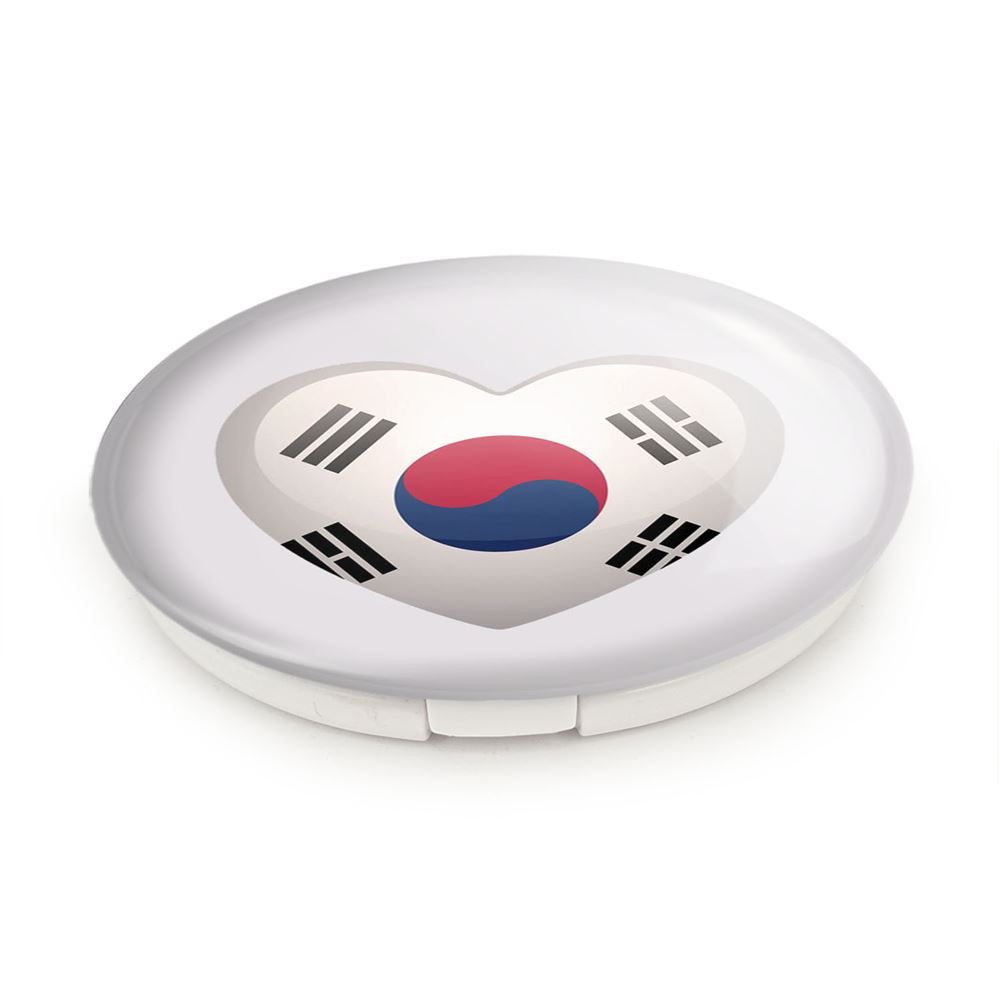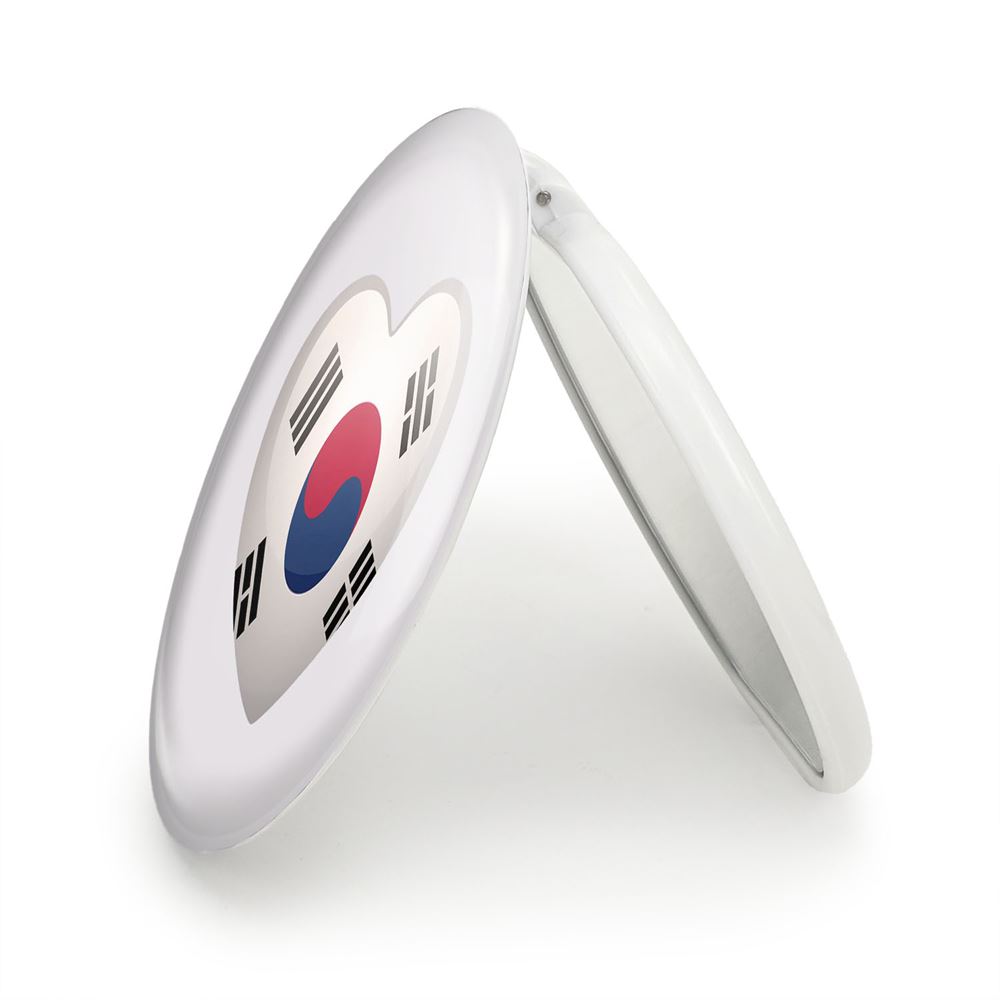 آینه های تاشو پرچم کره جنوبی خندالو، از جنس پلاستیک فشرده ABS تولید شده و به رنگ سفید می باشد. یکی از آینه ها ابعاد واقعی را نشان داده و دیگری با قابلیت بزرگنمایی، جزئیات را بهتر نمایش می دهد. ابعاد هر یک از آینه ها، دایره ای به قطر 7.5 سانت می باشد که نه خیلی بزرگ و غیر قابل استفاده در کیف آرایشی ست و نه خیلی کوچک که تصویر خاصی در آن مشاهده نشود. آینه تاشو پرچم کره جنوبی سایزی استاندارد و کارآمد دارد و در هر کیفی جا میگیرد. چاپ طرح بوسیله چاپگرهای دیجیتال شش رنگ با شفافیت و کیفیتی مثال زدنی بر روی یک وجه از بدنه ی آینه انجام گرفته و با روکش لمینت حرارتی پوشیده شده که در مقابل آسیب و خط و خش مقاوم بوده و کیفیت بالایی دارد. درب آینه بوسیله قفل بدنه ی آن، باز نمی ماند و کاملا بسته می شود و مناسب قرار گیری در کیف لوازم آرایش و کیف های کوچک دستی نیز هست. آینه های تاشو پرچم کره جنوبی خندالو با تنوع طرحی بسیار بالا، سلیقه هر نوع مخاطبی را تامین میکند.