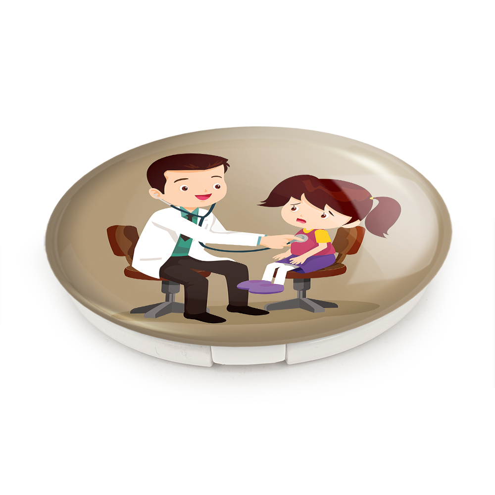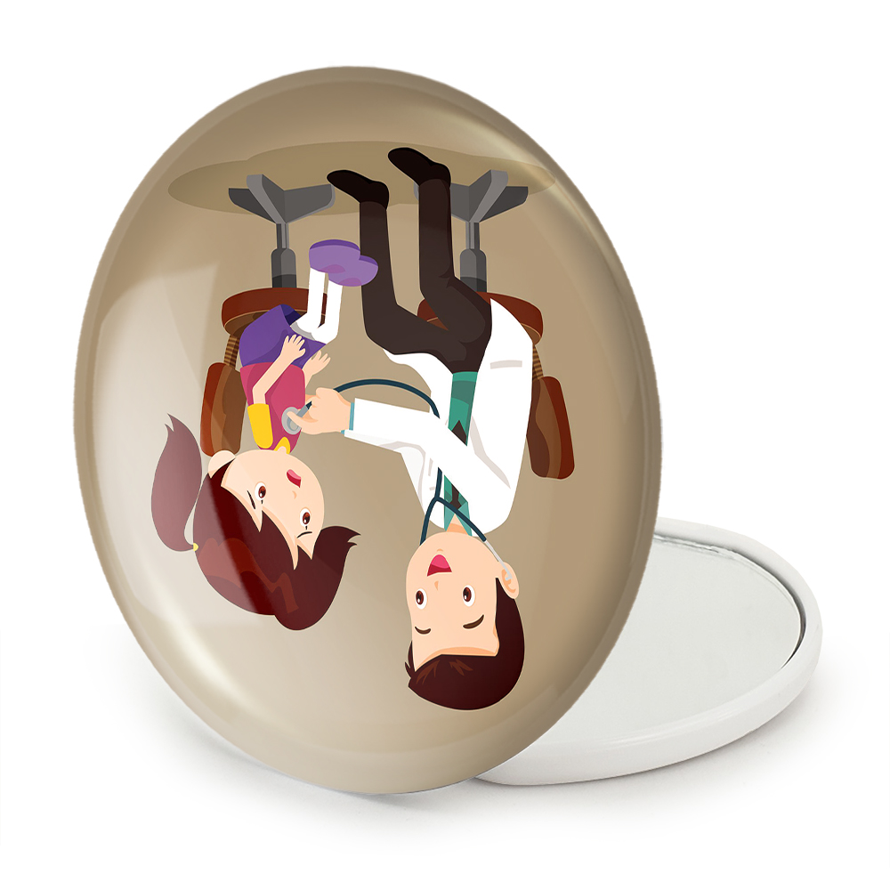 آینه های تاشو پزشک و پرستار کودکانه خندالو، از جنس پلاستیک فشرده ABS تولید شده و به رنگ سفید می باشد. یکی از آینه ها ابعاد واقعی را نشان داده و دیگری با قابلیت بزرگنمایی، جزئیات را بهتر نمایش می دهد.