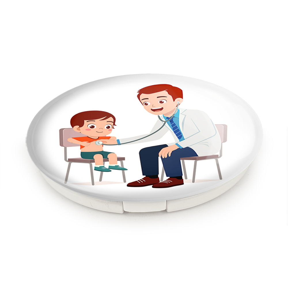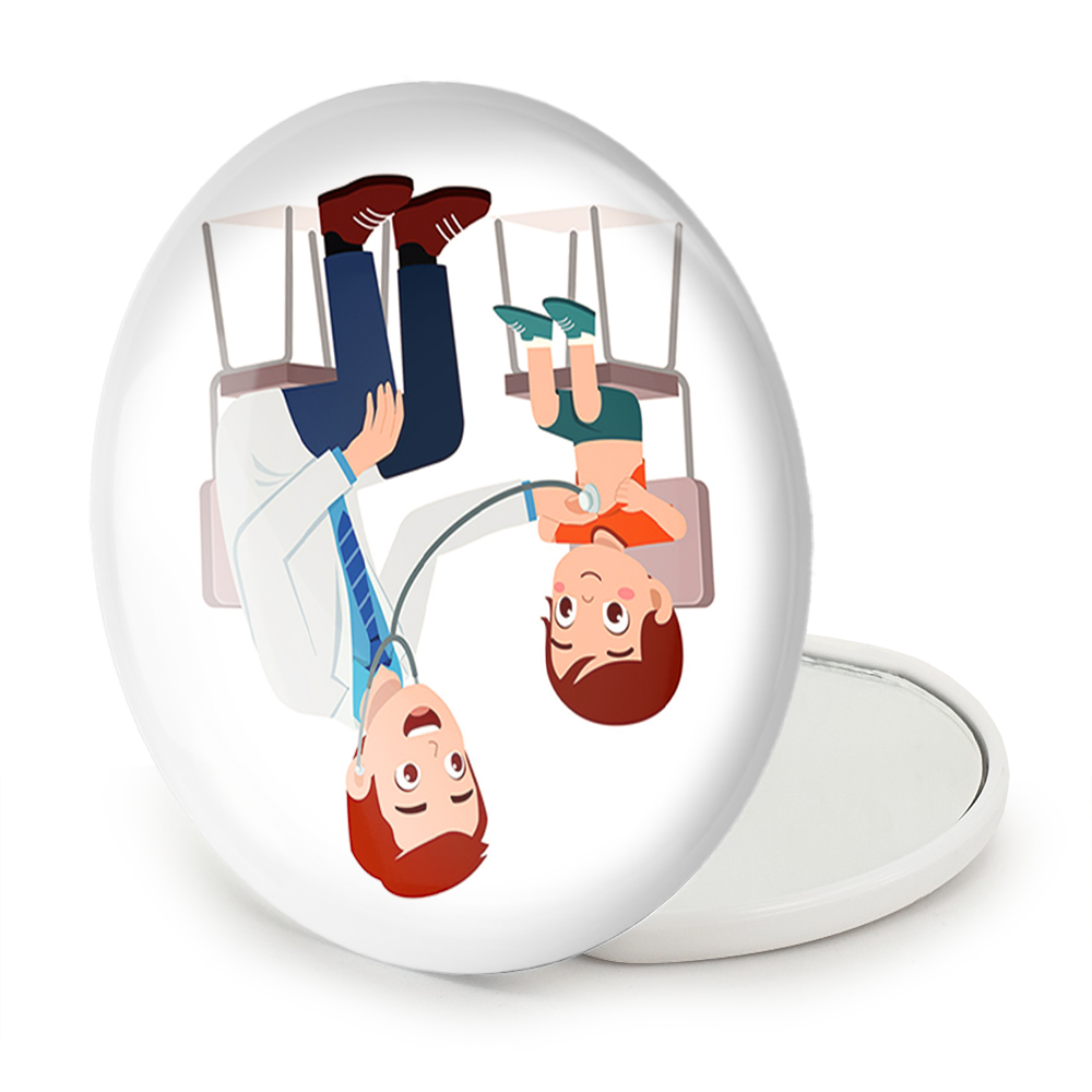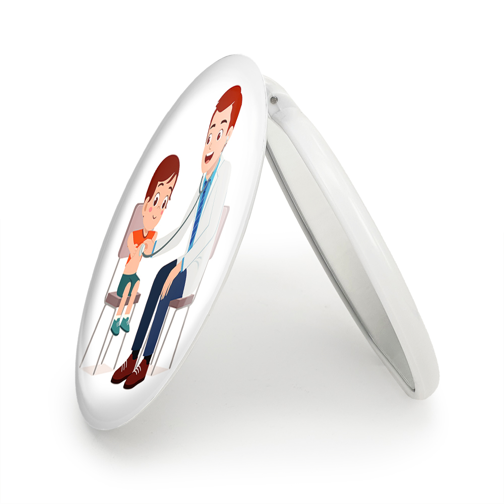 آینه های تاشو پزشک و پرستار کودکانه خندالو، از جنس پلاستیک فشرده ABS تولید شده و به رنگ سفید می باشد. یکی از آینه ها ابعاد واقعی را نشان داده و دیگری با قابلیت بزرگنمایی، جزئیات را بهتر نمایش می دهد.