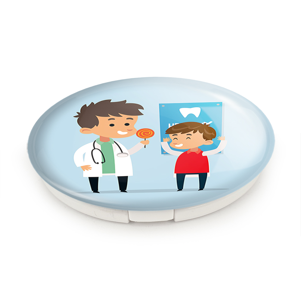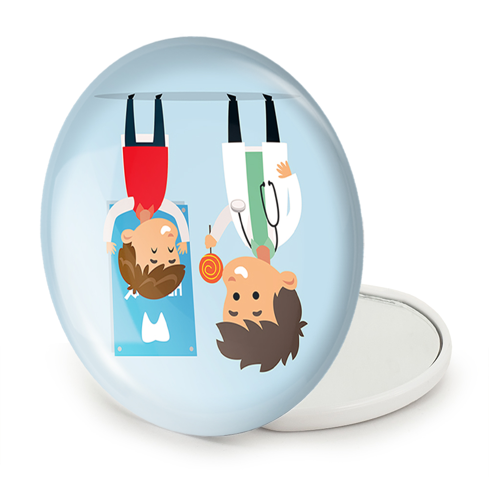 آینه های تاشو پزشک و پرستار کودکانه خندالو، از جنس پلاستیک فشرده ABS تولید شده و به رنگ سفید می باشد. یکی از آینه ها ابعاد واقعی را نشان داده و دیگری با قابلیت بزرگنمایی، جزئیات را بهتر نمایش می دهد.