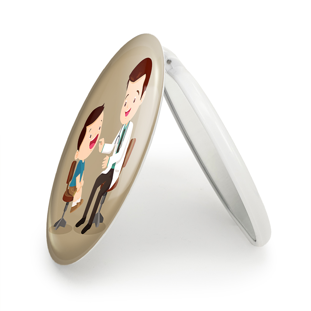 آینه های تاشو پزشک و پرستار کودکانه خندالو، از جنس پلاستیک فشرده ABS تولید شده و به رنگ سفید می باشد. یکی از آینه ها ابعاد واقعی را نشان داده و دیگری با قابلیت بزرگنمایی، جزئیات را بهتر نمایش می دهد.