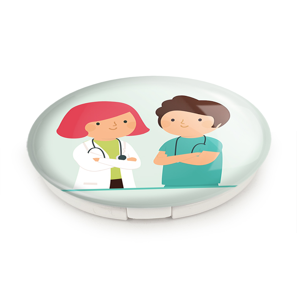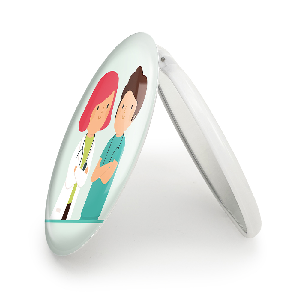 آینه های تاشو پزشک و پرستار کودکانه خندالو، از جنس پلاستیک فشرده ABS تولید شده و به رنگ سفید می باشد. یکی از آینه ها ابعاد واقعی را نشان داده و دیگری با قابلیت بزرگنمایی، جزئیات را بهتر نمایش می دهد.