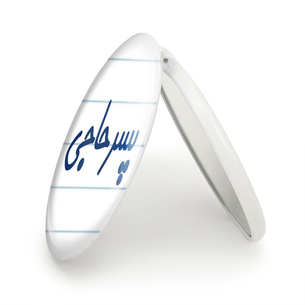 آینه های تاشو پسر حاجی خندالو، از جنس پلاستیک فشرده ABS تولید شده و به رنگ سفید می باشد. یکی از آینه ها ابعاد واقعی را نشان داده و دیگری با قابلیت بزرگنمایی، جزئیات را بهتر نمایش می دهد. ابعاد هر یک از آینه ها، دایره ای به قطر 7.5 سانت می باشد که نه خیلی بزرگ و غیر قابل استفاده در کیف آرایشی ست و نه خیلی کوچک که تصویر خاصی در آن مشاهده نشود. آینه تاشو پسر حاجی سایزی استاندارد و کارآمد دارد و در هر کیفی جا میگیرد. چاپ طرح بوسیله چاپگرهای دیجیتال شش رنگ با شفافیت و کیفیتی مثال زدنی بر روی یک وجه از بدنه ی آینه انجام گرفته و با روکش لمینت حرارتی پوشیده شده که در مقابل آسیب و خط و خش مقاوم بوده و کیفیت بالایی دارد. درب آینه بوسیله قفل بدنه ی آن، باز نمی ماند و کاملا بسته می شود و مناسب قرار گیری در کیف لوازم آرایش و کیف های کوچک دستی نیز هست. آینه های تاشو پسر حاجی خندالو با تنوع طرحی بسیار بالا، سلیقه هر نوع مخاطبی را تامین میکند.