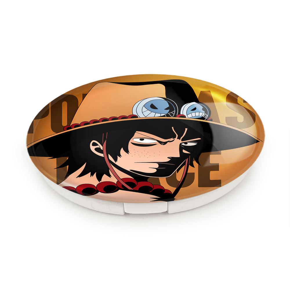 آینه های تاشو پورتگاس انیمه وان پیس One Piece خندالو، از جنس پلاستیک فشرده ABS تولید شده و به رنگ سفید می باشد. یکی از آینه ها ابعاد واقعی را نشان داده و دیگری با قابلیت بزرگنمایی، جزئیات را بهتر نمایش می دهد. ابعاد هر یک از آینه ها، دایره ای به قطر 7.5 سانت می باشد که نه خیلی بزرگ و غیر قابل استفاده در کیف آرایشی ست و نه خیلی کوچک که تصویر خاصی در آن مشاهده نشود. آینه تاشو پورتگاس انیمه وان پیس One Piece سایزی استاندارد و کارآمد دارد و در هر کیفی جا میگیرد. چاپ طرح بوسیله چاپگرهای دیجیتال شش رنگ با شفافیت و کیفیتی مثال زدنی بر روی یک وجه از بدنه ی آینه انجام گرفته و با روکش لمینت حرارتی پوشیده شده که در مقابل آسیب و خط و خش مقاوم بوده و کیفیت بالایی دارد. درب آینه بوسیله قفل بدنه ی آن، باز نمی ماند و کاملا بسته می شود و مناسب قرار گیری در کیف لوازم آرایش و کیف های کوچک دستی نیز هست. آینه های تاشو پورتگاس انیمه وان پیس One Piece خندالو با تنوع طرحی بسیار بالا، سلیقه هر نوع مخاطبی را تامین میکند.