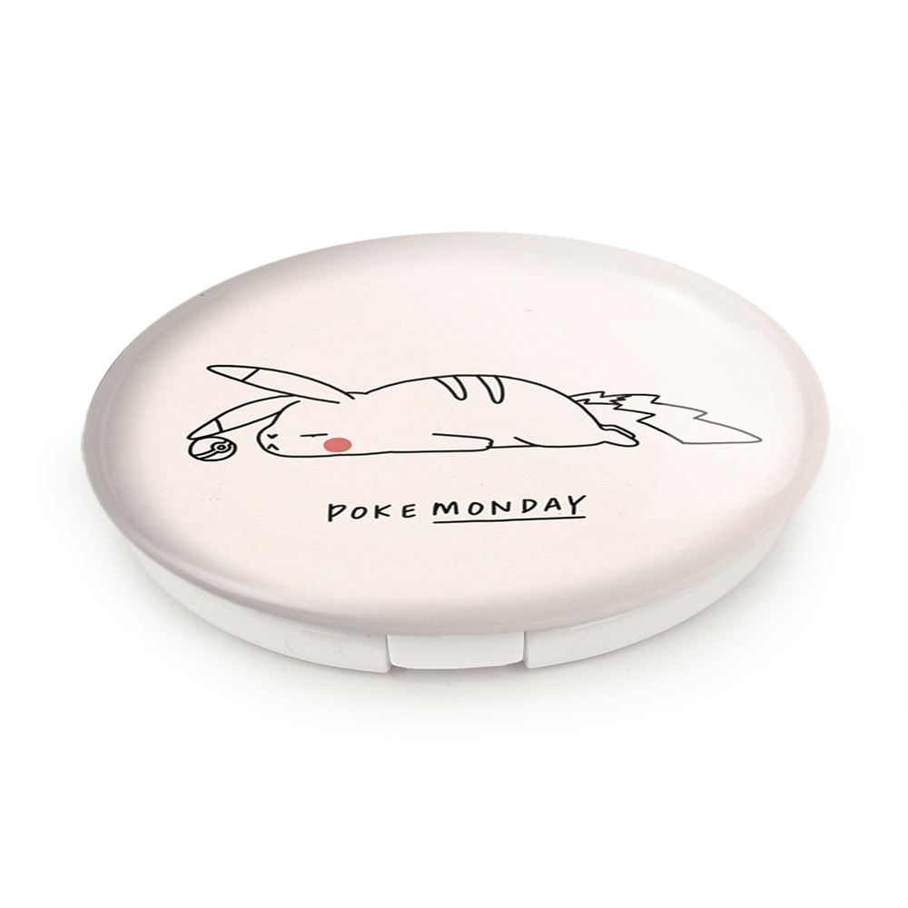 آینه های تاشو پوکمون خندالو، از جنس پلاستیک فشرده ABS تولید شده و به رنگ سفید می باشد. یکی از آینه ها ابعاد واقعی را نشان داده و دیگری با قابلیت بزرگنمایی، جزئیات را بهتر نمایش می دهد. ابعاد هر یک از آینه ها، دایره ای به قطر 7.5 سانت می باشد که نه خیلی بزرگ و غیر قابل استفاده در کیف آرایشی ست و نه خیلی کوچک که تصویر خاصی در آن مشاهده نشود. آینه تاشو پوکمون سایزی استاندارد و کارآمد دارد و در هر کیفی جا میگیرد. چاپ طرح بوسیله چاپگرهای دیجیتال شش رنگ با شفافیت و کیفیتی مثال زدنی بر روی یک وجه از بدنه ی آینه انجام گرفته و با روکش لمینت حرارتی پوشیده شده که در مقابل آسیب و خط و خش مقاوم بوده و کیفیت بالایی دارد. درب آینه بوسیله قفل بدنه ی آن، باز نمی ماند و کاملا بسته می شود و مناسب قرار گیری در کیف لوازم آرایش و کیف های کوچک دستی نیز هست. آینه های تاشو پوکمون خندالو با تنوع طرحی بسیار بالا، سلیقه هر نوع مخاطبی را تامین میکند.