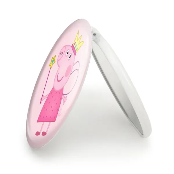 آینه های تاشو پپا انیمیشن پپا پیگ Peppa pig خندالو، از جنس پلاستیک فشرده ABS تولید شده و به رنگ سفید می باشد. یکی از آینه ها ابعاد واقعی را نشان داده و دیگری با قابلیت بزرگنمایی، جزئیات را بهتر نمایش می دهد. ابعاد هر یک از آینه ها، دایره ای به قطر 7.5 سانت می باشد که نه خیلی بزرگ و غیر قابل استفاده در کیف آرایشی ست و نه خیلی کوچک که تصویر خاصی در آن مشاهده نشود. آینه تاشو پپا انیمیشن پپا پیگ Peppa pig سایزی استاندارد و کارآمد دارد و در هر کیفی جا میگیرد. چاپ طرح بوسیله چاپگرهای دیجیتال شش رنگ با شفافیت و کیفیتی مثال زدنی بر روی یک وجه از بدنه ی آینه انجام گرفته و با روکش لمینت حرارتی پوشیده شده که در مقابل آسیب و خط و خش مقاوم بوده و کیفیت بالایی دارد. درب آینه بوسیله قفل بدنه ی آن، باز نمی ماند و کاملا بسته می شود و مناسب قرار گیری در کیف لوازم آرایش و کیف های کوچک دستی نیز هست. آینه های تاشو پپا انیمیشن پپا پیگ Peppa pig خندالو با تنوع طرحی بسیار بالا، سلیقه هر نوع مخاطبی را تامین میکند.