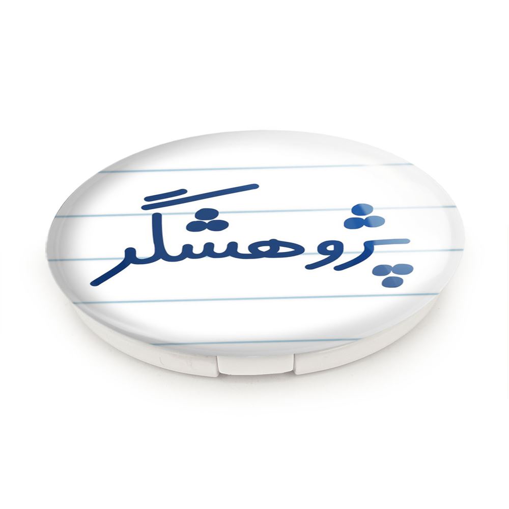 آینه های تاشو پژوهشگر خندالو، از جنس پلاستیک فشرده ABS تولید شده و به رنگ سفید می باشد. یکی از آینه ها ابعاد واقعی را نشان داده و دیگری با قابلیت بزرگنمایی، جزئیات را بهتر نمایش می دهد. ابعاد هر یک از آینه ها، دایره ای به قطر 7.5 سانت می باشد که نه خیلی بزرگ و غیر قابل استفاده در کیف آرایشی ست و نه خیلی کوچک که تصویر خاصی در آن مشاهده نشود. آینه تاشو پژوهشگر سایزی استاندارد و کارآمد دارد و در هر کیفی جا میگیرد. چاپ طرح بوسیله چاپگرهای دیجیتال شش رنگ با شفافیت و کیفیتی مثال زدنی بر روی یک وجه از بدنه ی آینه انجام گرفته و با روکش لمینت حرارتی پوشیده شده که در مقابل آسیب و خط و خش مقاوم بوده و کیفیت بالایی دارد. درب آینه بوسیله قفل بدنه ی آن، باز نمی ماند و کاملا بسته می شود و مناسب قرار گیری در کیف لوازم آرایش و کیف های کوچک دستی نیز هست. آینه های تاشو پژوهشگر خندالو با تنوع طرحی بسیار بالا، سلیقه هر نوع مخاطبی را تامین میکند.