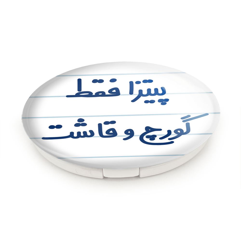 آینه های تاشو پیتزا فقط گورچ و قاشت خندالو، از جنس پلاستیک فشرده ABS تولید شده و به رنگ سفید می باشد. یکی از آینه ها ابعاد واقعی را نشان داده و دیگری با قابلیت بزرگنمایی، جزئیات را بهتر نمایش می دهد. ابعاد هر یک از آینه ها، دایره ای به قطر 7.5 سانت می باشد که نه خیلی بزرگ و غیر قابل استفاده در کیف آرایشی ست و نه خیلی کوچک که تصویر خاصی در آن مشاهده نشود. آینه تاشو پیتزا فقط گورچ و قاشت سایزی استاندارد و کارآمد دارد و در هر کیفی جا میگیرد. چاپ طرح بوسیله چاپگرهای دیجیتال شش رنگ با شفافیت و کیفیتی مثال زدنی بر روی یک وجه از بدنه ی آینه انجام گرفته و با روکش لمینت حرارتی پوشیده شده که در مقابل آسیب و خط و خش مقاوم بوده و کیفیت بالایی دارد. درب آینه بوسیله قفل بدنه ی آن، باز نمی ماند و کاملا بسته می شود و مناسب قرار گیری در کیف لوازم آرایش و کیف های کوچک دستی نیز هست. آینه های تاشو پیتزا فقط گورچ و قاشت خندالو با تنوع طرحی بسیار بالا، سلیقه هر نوع مخاطبی را تامین میکند.