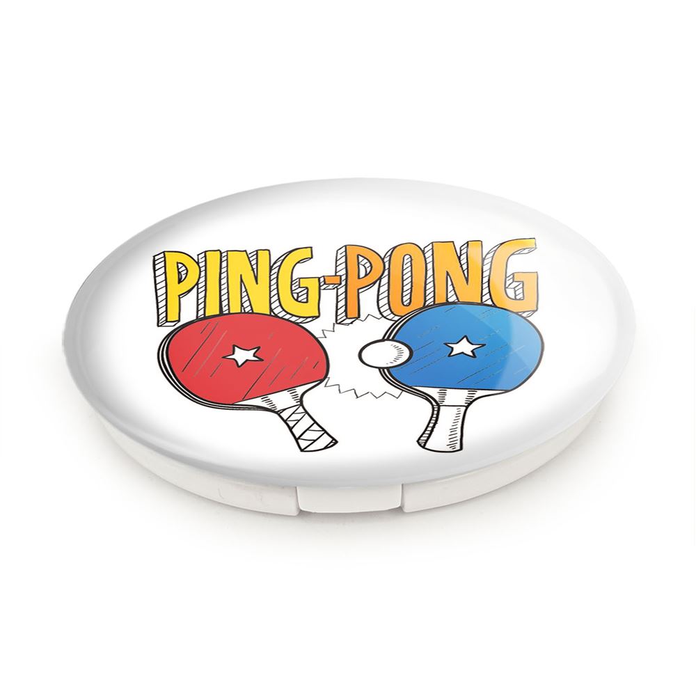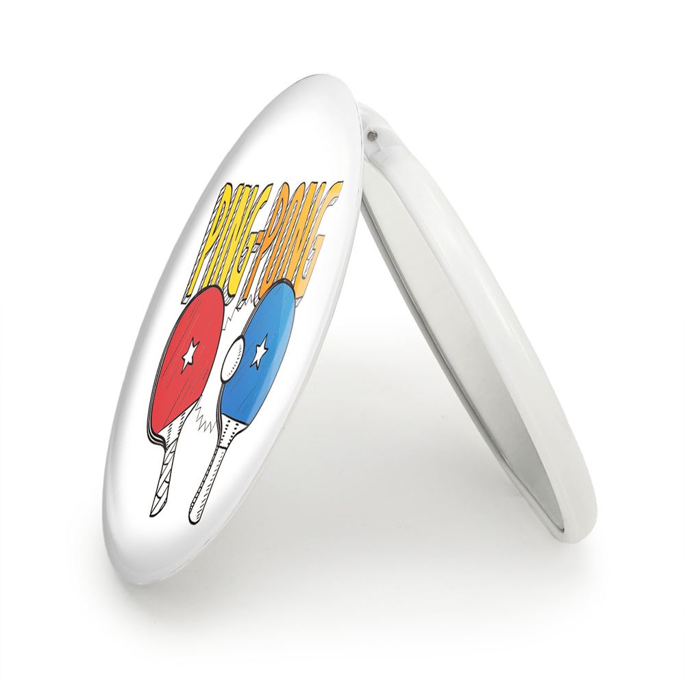 آینه های تاشو پینگ پنگ Ping Pong خندالو، از جنس پلاستیک فشرده ABS تولید شده و به رنگ سفید می باشد. یکی از آینه ها ابعاد واقعی را نشان داده و دیگری با قابلیت بزرگنمایی، جزئیات را بهتر نمایش می دهد. ابعاد هر یک از آینه ها، دایره ای به قطر 7.5 سانت می باشد که نه خیلی بزرگ و غیر قابل استفاده در کیف آرایشی ست و نه خیلی کوچک که تصویر خاصی در آن مشاهده نشود. آینه تاشو پینگ پنگ Ping Pong سایزی استاندارد و کارآمد دارد و در هر کیفی جا میگیرد. چاپ طرح بوسیله چاپگرهای دیجیتال شش رنگ با شفافیت و کیفیتی مثال زدنی بر روی یک وجه از بدنه ی آینه انجام گرفته و با روکش لمینت حرارتی پوشیده شده که در مقابل آسیب و خط و خش مقاوم بوده و کیفیت بالایی دارد. درب آینه بوسیله قفل بدنه ی آن، باز نمی ماند و کاملا بسته می شود و مناسب قرار گیری در کیف لوازم آرایش و کیف های کوچک دستی نیز هست. آینه های تاشو پینگ پنگ Ping Pong خندالو با تنوع طرحی بسیار بالا، سلیقه هر نوع مخاطبی را تامین میکند.