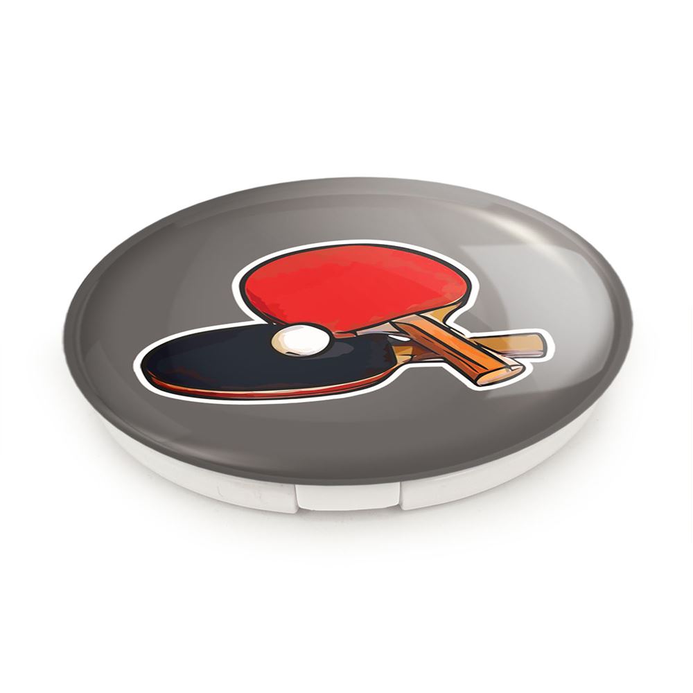 آینه های تاشو پینگ پنگ Ping Pong خندالو، از جنس پلاستیک فشرده ABS تولید شده و به رنگ سفید می باشد. یکی از آینه ها ابعاد واقعی را نشان داده و دیگری با قابلیت بزرگنمایی، جزئیات را بهتر نمایش می دهد. ابعاد هر یک از آینه ها، دایره ای به قطر 7.5 سانت می باشد که نه خیلی بزرگ و غیر قابل استفاده در کیف آرایشی ست و نه خیلی کوچک که تصویر خاصی در آن مشاهده نشود. آینه تاشو پینگ پنگ Ping Pong سایزی استاندارد و کارآمد دارد و در هر کیفی جا میگیرد. چاپ طرح بوسیله چاپگرهای دیجیتال شش رنگ با شفافیت و کیفیتی مثال زدنی بر روی یک وجه از بدنه ی آینه انجام گرفته و با روکش لمینت حرارتی پوشیده شده که در مقابل آسیب و خط و خش مقاوم بوده و کیفیت بالایی دارد. درب آینه بوسیله قفل بدنه ی آن، باز نمی ماند و کاملا بسته می شود و مناسب قرار گیری در کیف لوازم آرایش و کیف های کوچک دستی نیز هست. آینه های تاشو پینگ پنگ Ping Pong خندالو با تنوع طرحی بسیار بالا، سلیقه هر نوع مخاطبی را تامین میکند.