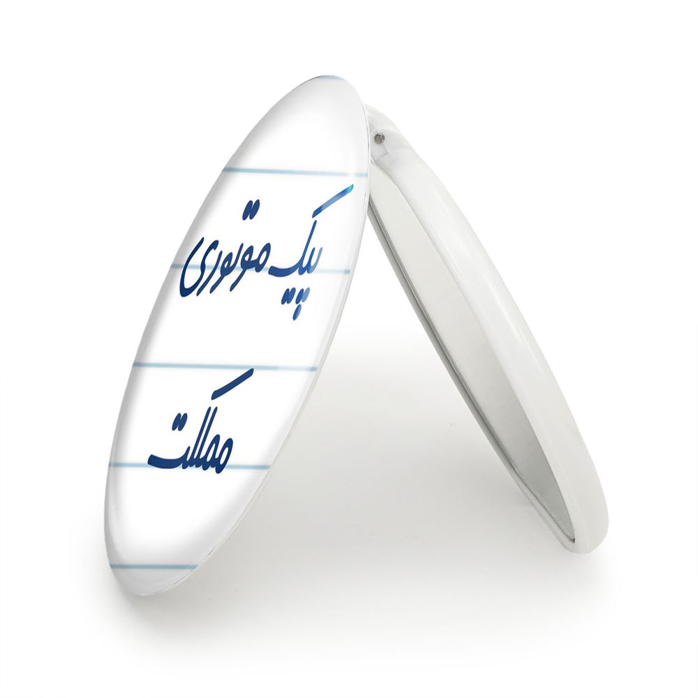 آینه های تاشو پیک موتوری مملکت خندالو، از جنس پلاستیک فشرده ABS تولید شده و به رنگ سفید می باشد. یکی از آینه ها ابعاد واقعی را نشان داده و دیگری با قابلیت بزرگنمایی، جزئیات را بهتر نمایش می دهد. ابعاد هر یک از آینه ها، دایره ای به قطر 7.5 سانت می باشد که نه خیلی بزرگ و غیر قابل استفاده در کیف آرایشی ست و نه خیلی کوچک که تصویر خاصی در آن مشاهده نشود. آینه تاشو پیک موتوری مملکت سایزی استاندارد و کارآمد دارد و در هر کیفی جا میگیرد. چاپ طرح بوسیله چاپگرهای دیجیتال شش رنگ با شفافیت و کیفیتی مثال زدنی بر روی یک وجه از بدنه ی آینه انجام گرفته و با روکش لمینت حرارتی پوشیده شده که در مقابل آسیب و خط و خش مقاوم بوده و کیفیت بالایی دارد. درب آینه بوسیله قفل بدنه ی آن، باز نمی ماند و کاملا بسته می شود و مناسب قرار گیری در کیف لوازم آرایش و کیف های کوچک دستی نیز هست. آینه های تاشو پیک موتوری مملکت خندالو با تنوع طرحی بسیار بالا، سلیقه هر نوع مخاطبی را تامین میکند.