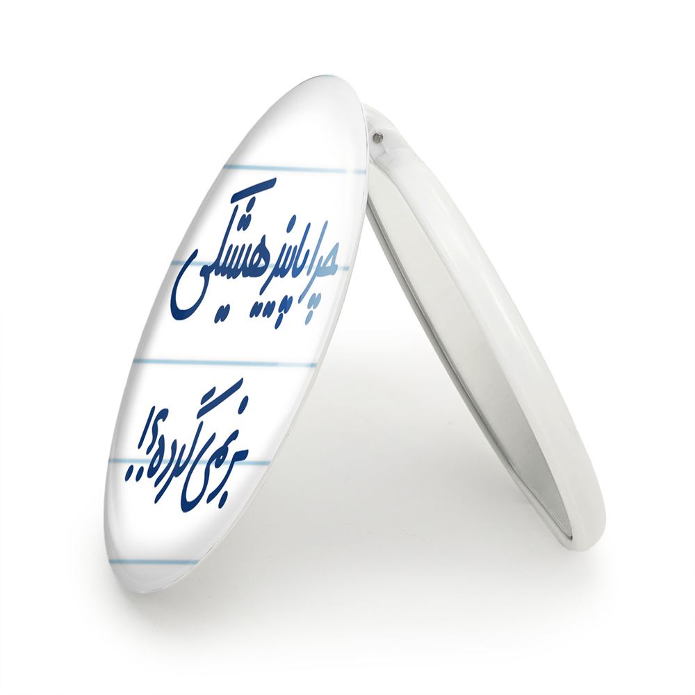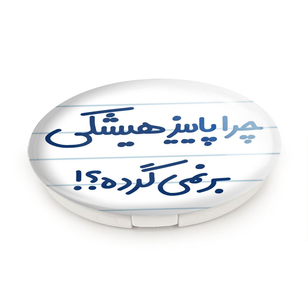 آینه های تاشو چرا هیشکی پاییز برنمی گرده خندالو، از جنس پلاستیک فشرده ABS تولید شده و به رنگ سفید می باشد. یکی از آینه ها ابعاد واقعی را نشان داده و دیگری با قابلیت بزرگنمایی، جزئیات را بهتر نمایش می دهد. ابعاد هر یک از آینه ها، دایره ای به قطر 7.5 سانت می باشد که نه خیلی بزرگ و غیر قابل استفاده در کیف آرایشی ست و نه خیلی کوچک که تصویر خاصی در آن مشاهده نشود. آینه تاشو چرا هیشکی پاییز برنمی گرده سایزی استاندارد و کارآمد دارد و در هر کیفی جا میگیرد. چاپ طرح بوسیله چاپگرهای دیجیتال شش رنگ با شفافیت و کیفیتی مثال زدنی بر روی یک وجه از بدنه ی آینه انجام گرفته و با روکش لمینت حرارتی پوشیده شده که در مقابل آسیب و خط و خش مقاوم بوده و کیفیت بالایی دارد. درب آینه بوسیله قفل بدنه ی آن، باز نمی ماند و کاملا بسته می شود و مناسب قرار گیری در کیف لوازم آرایش و کیف های کوچک دستی نیز هست. آینه های تاشو چرا هیشکی پاییز برنمی گرده خندالو با تنوع طرحی بسیار بالا، سلیقه هر نوع مخاطبی را تامین میکند.