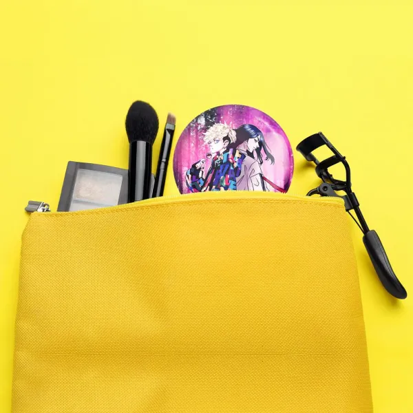 آینه های تاشو چیفویو و باجی انیمه توکیو ریونجرز خندالو، از جنس پلاستیک فشرده ABS تولید شده و به رنگ سفید می باشد. یکی از آینه ها ابعاد واقعی را نشان داده و دیگری با قابلیت بزرگنمایی، جزئیات را بهتر نمایش می دهد. ابعاد هر یک از آینه ها، دایره ای به قطر 7.5 سانت می باشد که نه خیلی بزرگ و غیر قابل استفاده در کیف آرایشی ست و نه خیلی کوچک که تصویر خاصی در آن مشاهده نشود. آینه تاشو چیفویو و باجی انیمه توکیو ریونجرز سایزی استاندارد و کارآمد دارد و در هر کیفی جا میگیرد. چاپ طرح بوسیله چاپگرهای دیجیتال شش رنگ با شفافیت و کیفیتی مثال زدنی بر روی یک وجه از بدنه ی آینه انجام گرفته و با روکش لمینت حرارتی پوشیده شده که در مقابل آسیب و خط و خش مقاوم بوده و کیفیت بالایی دارد. درب آینه بوسیله قفل بدنه ی آن، باز نمی ماند و کاملا بسته می شود و مناسب قرار گیری در کیف لوازم آرایش و کیف های کوچک دستی نیز هست. آینه های تاشو چیفویو و باجی انیمه توکیو ریونجرز خندالو با تنوع طرحی بسیار بالا، سلیقه هر نوع مخاطبی را تامین میکند.