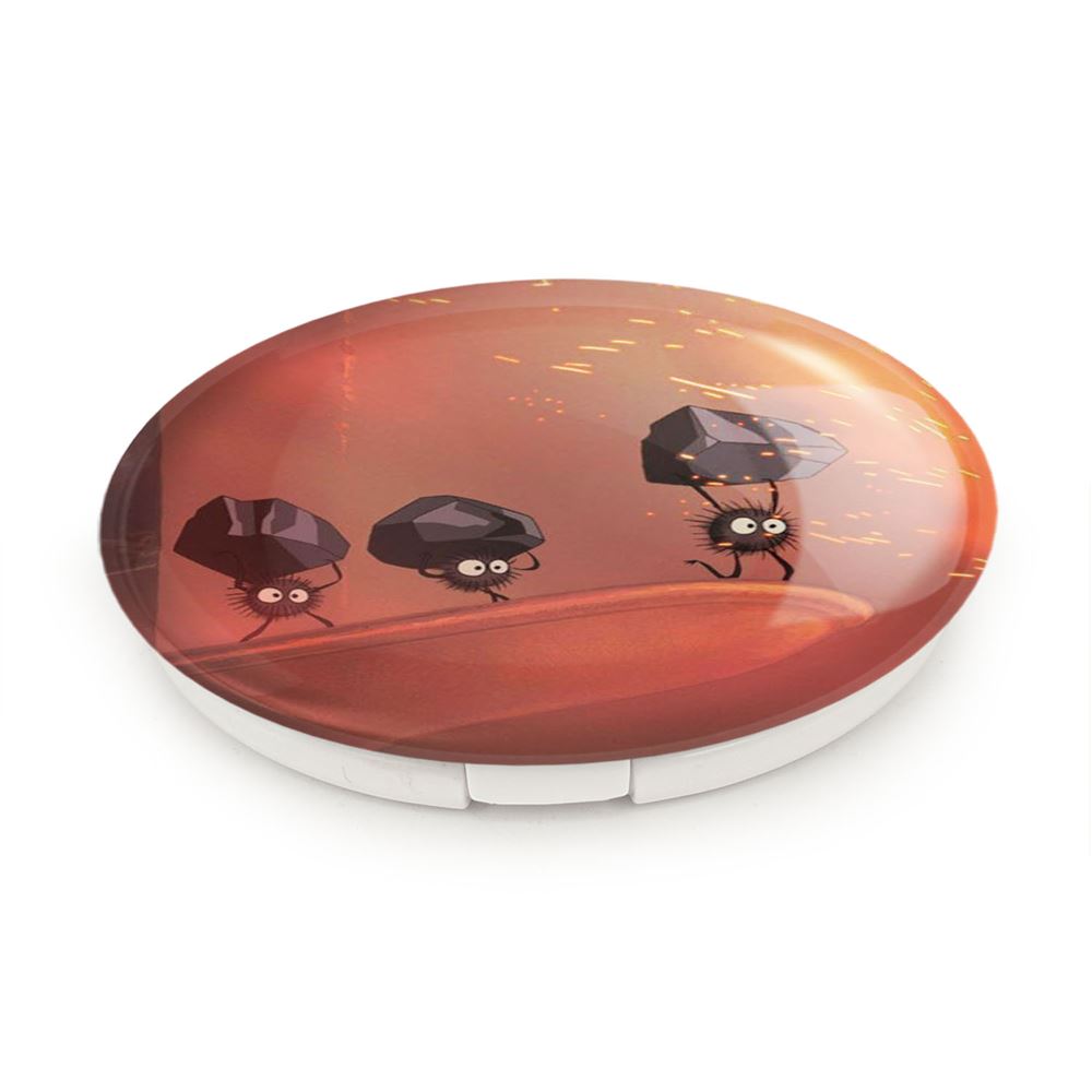 آینه های تاشو چیهیرو انیمه شهر اشباح Spirited Away خندالو، از جنس پلاستیک فشرده ABS تولید شده و به رنگ سفید می باشد. یکی از آینه ها ابعاد واقعی را نشان داده و دیگری با قابلیت بزرگنمایی، جزئیات را بهتر نمایش می دهد. ابعاد هر یک از آینه ها، دایره ای به قطر 7.5 سانت می باشد که نه خیلی بزرگ و غیر قابل استفاده در کیف آرایشی ست و نه خیلی کوچک که تصویر خاصی در آن مشاهده نشود. آینه تاشو چیهیرو انیمه شهر اشباح Spirited Away سایزی استاندارد و کارآمد دارد و در هر کیفی جا میگیرد. چاپ طرح بوسیله چاپگرهای دیجیتال شش رنگ با شفافیت و کیفیتی مثال زدنی بر روی یک وجه از بدنه ی آینه انجام گرفته و با روکش لمینت حرارتی پوشیده شده که در مقابل آسیب و خط و خش مقاوم بوده و کیفیت بالایی دارد. درب آینه بوسیله قفل بدنه ی آن، باز نمی ماند و کاملا بسته می شود و مناسب قرار گیری در کیف لوازم آرایش و کیف های کوچک دستی نیز هست. آینه های تاشو چیهیرو انیمه شهر اشباح Spirited Away خندالو با تنوع طرحی بسیار بالا، سلیقه هر نوع مخاطبی را تامین میکند.