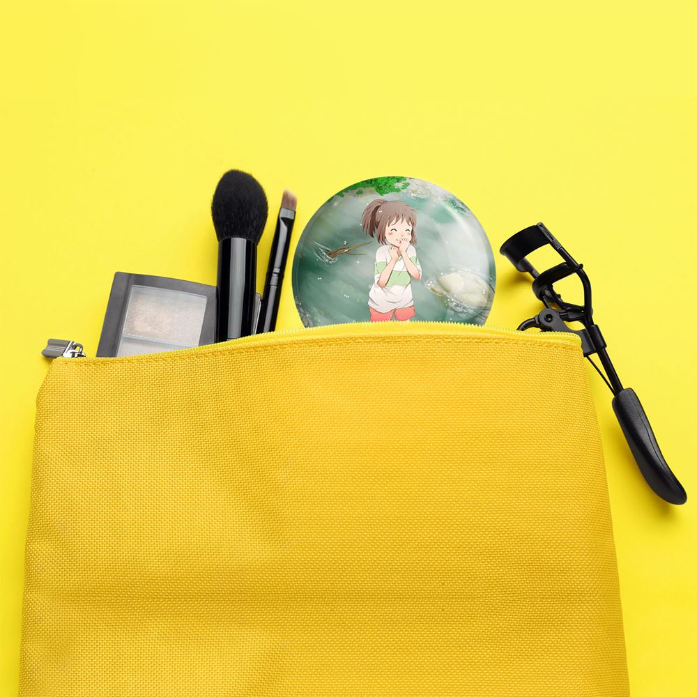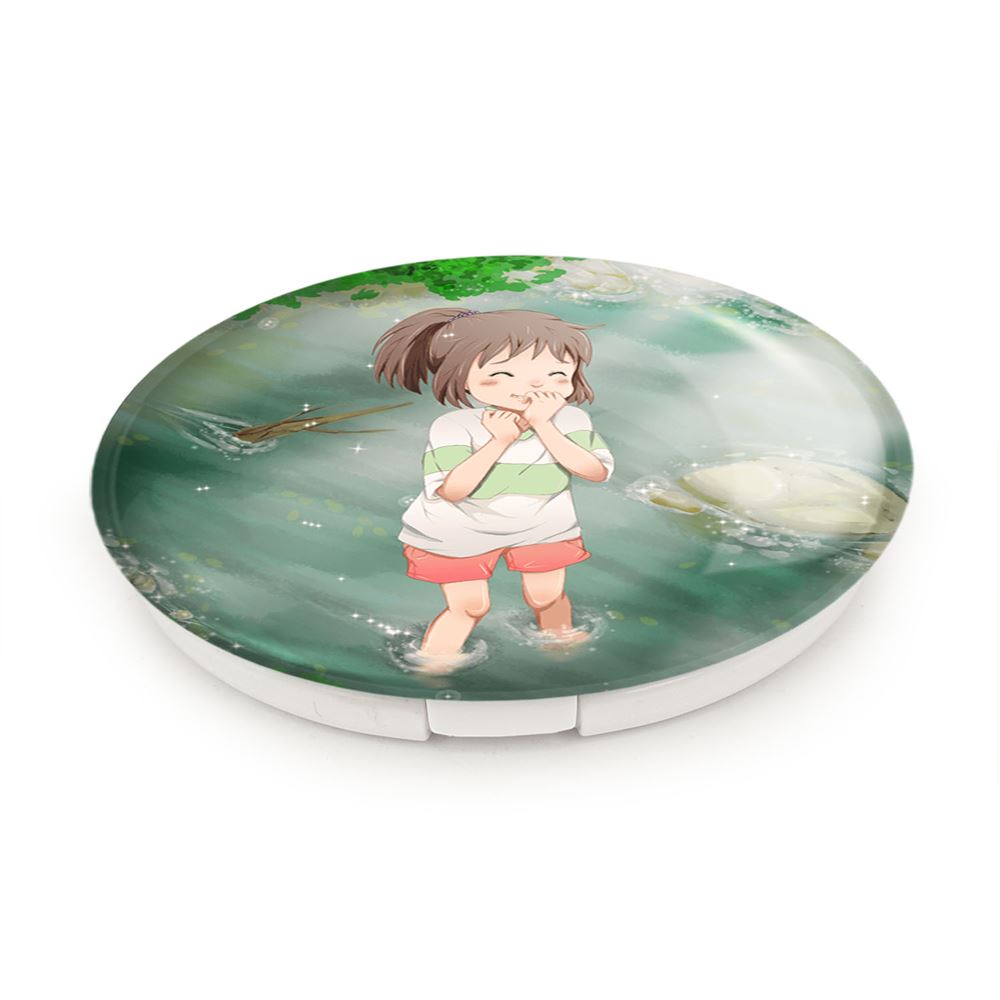 آینه های تاشو چیهیرو و هاکو انیمه شهر اشباح Spirited Away خندالو، از جنس پلاستیک فشرده ABS تولید شده و به رنگ سفید می باشد. یکی از آینه ها ابعاد واقعی را نشان داده و دیگری با قابلیت بزرگنمایی، جزئیات را بهتر نمایش می دهد. ابعاد هر یک از آینه ها، دایره ای به قطر 7.5 سانت می باشد که نه خیلی بزرگ و غیر قابل استفاده در کیف آرایشی ست و نه خیلی کوچک که تصویر خاصی در آن مشاهده نشود. آینه تاشو چیهیرو و هاکو انیمه شهر اشباح Spirited Away سایزی استاندارد و کارآمد دارد و در هر کیفی جا میگیرد. چاپ طرح بوسیله چاپگرهای دیجیتال شش رنگ با شفافیت و کیفیتی مثال زدنی بر روی یک وجه از بدنه ی آینه انجام گرفته و با روکش لمینت حرارتی پوشیده شده که در مقابل آسیب و خط و خش مقاوم بوده و کیفیت بالایی دارد. درب آینه بوسیله قفل بدنه ی آن، باز نمی ماند و کاملا بسته می شود و مناسب قرار گیری در کیف لوازم آرایش و کیف های کوچک دستی نیز هست. آینه های تاشو چیهیرو و هاکو انیمه شهر اشباح Spirited Away خندالو با تنوع طرحی بسیار بالا، سلیقه هر نوع مخاطبی را تامین میکند.