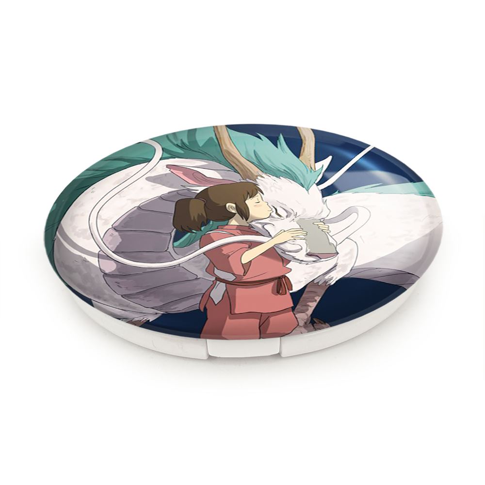 آینه های تاشو چیهیرو و هاکو انیمه شهر اشباح Spirited Away خندالو، از جنس پلاستیک فشرده ABS تولید شده و به رنگ سفید می باشد. یکی از آینه ها ابعاد واقعی را نشان داده و دیگری با قابلیت بزرگنمایی، جزئیات را بهتر نمایش می دهد.