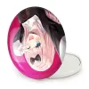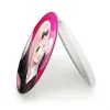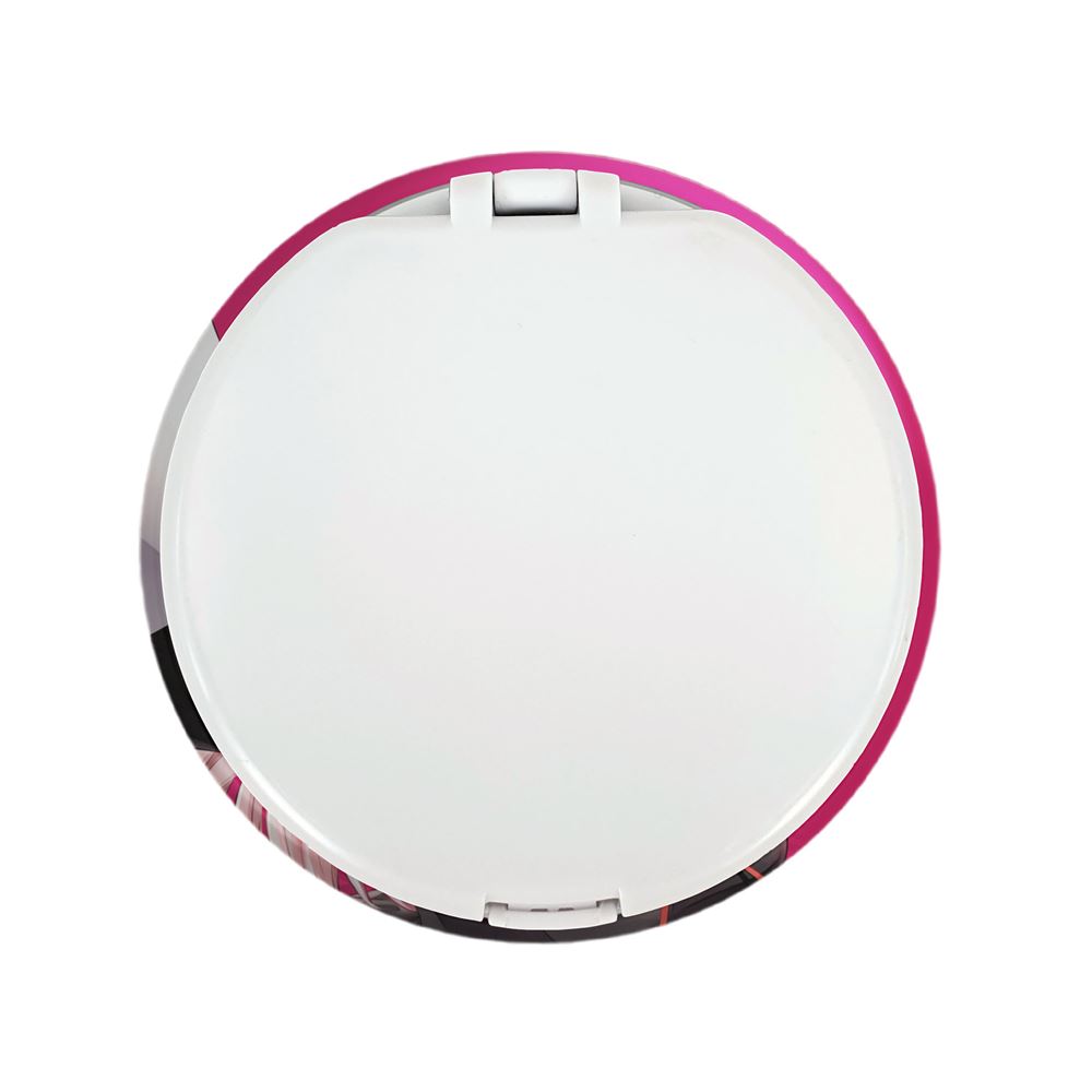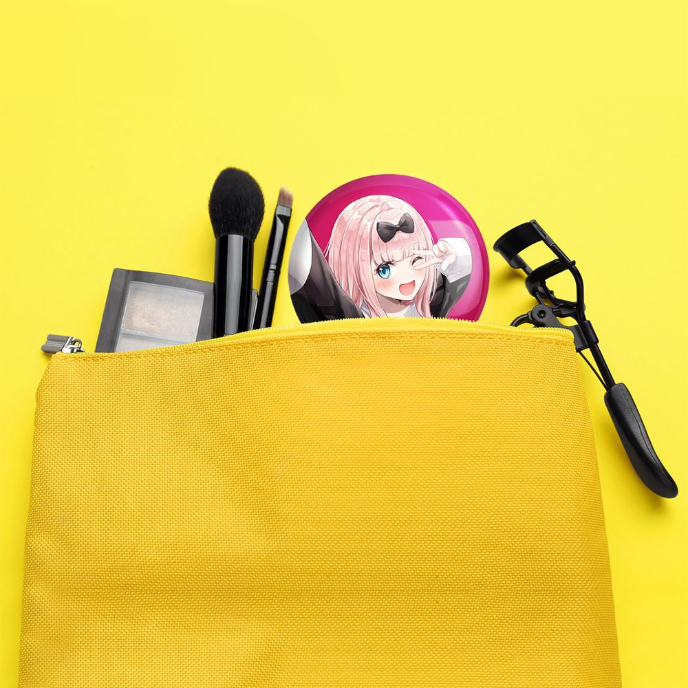 آینه های تاشو چیکا انیمه کاگویا ساما خندالو، از جنس پلاستیک فشرده ABS تولید شده و به رنگ سفید می باشد. یکی از آینه ها ابعاد واقعی را نشان داده و دیگری با قابلیت بزرگنمایی، جزئیات را بهتر نمایش می دهد. ابعاد هر یک از آینه ها، دایره ای به قطر 7.5 سانت می باشد که نه خیلی بزرگ و غیر قابل استفاده در کیف آرایشی ست و نه خیلی کوچک که تصویر خاصی در آن مشاهده نشود. آینه تاشو چیکا انیمه کاگویا ساما سایزی استاندارد و کارآمد دارد و در هر کیفی جا میگیرد. چاپ طرح بوسیله چاپگرهای دیجیتال شش رنگ با شفافیت و کیفیتی مثال زدنی بر روی یک وجه از بدنه ی آینه انجام گرفته و با روکش لمینت حرارتی پوشیده شده که در مقابل آسیب و خط و خش مقاوم بوده و کیفیت بالایی دارد. درب آینه بوسیله قفل بدنه ی آن، باز نمی ماند و کاملا بسته می شود و مناسب قرار گیری در کیف لوازم آرایش و کیف های کوچک دستی نیز هست. آینه های تاشو چیکا انیمه کاگویا ساما خندالو با تنوع طرحی بسیار بالا، سلیقه هر نوع مخاطبی را تامین میکند.