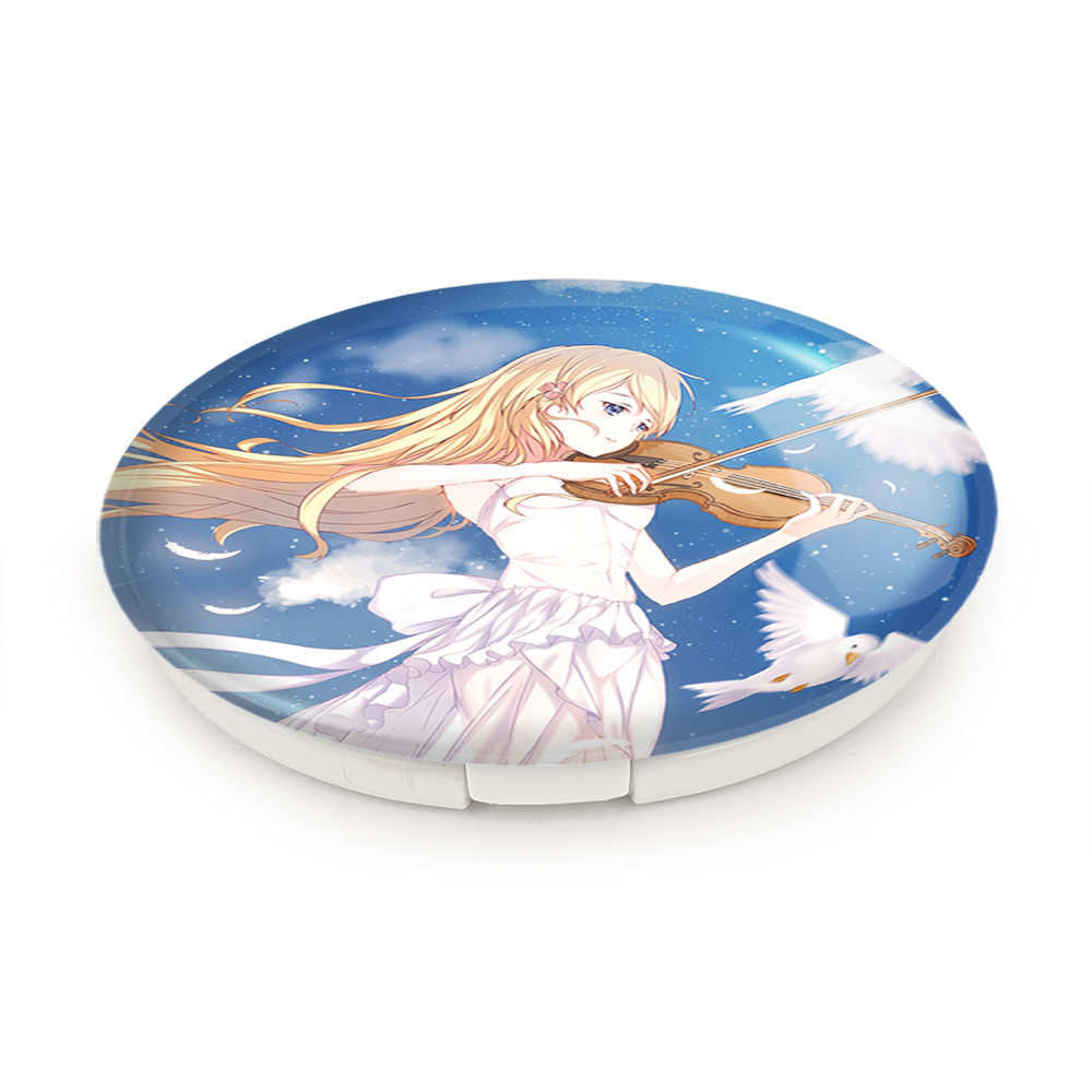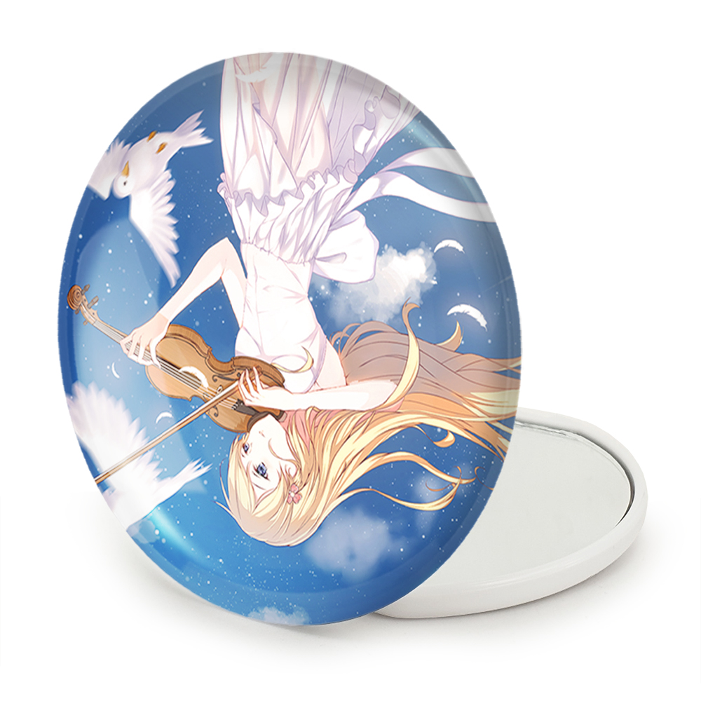آینه های تاشو کائوری انیمه دروغ تو در آوریل خندالو، از جنس پلاستیک فشرده ABS تولید شده و به رنگ سفید می باشد. یکی از آینه ها ابعاد واقعی را نشان داده و دیگری با قابلیت بزرگنمایی، جزئیات را بهتر نمایش می دهد. ابعاد هر یک از آینه ها، دایره ای به قطر 7.5 سانت می باشد که نه خیلی بزرگ و غیر قابل استفاده در کیف آرایشی ست و نه خیلی کوچک که تصویر خاصی در آن مشاهده نشود. آینه تاشو کائوری انیمه دروغ تو در آوریل سایزی استاندارد و کارآمد دارد و در هر کیفی جا میگیرد. چاپ طرح بوسیله چاپگرهای دیجیتال شش رنگ با شفافیت و کیفیتی مثال زدنی بر روی یک وجه از بدنه ی آینه انجام گرفته و با روکش لمینت حرارتی پوشیده شده که در مقابل آسیب و خط و خش مقاوم بوده و کیفیت بالایی دارد. درب آینه بوسیله قفل بدنه ی آن، باز نمی ماند و کاملا بسته می شود و مناسب قرار گیری در کیف لوازم آرایش و کیف های کوچک دستی نیز هست. آینه های تاشو کائوری انیمه دروغ تو در آوریل خندالو با تنوع طرحی بسیار بالا، سلیقه هر نوع مخاطبی را تامین میکند.