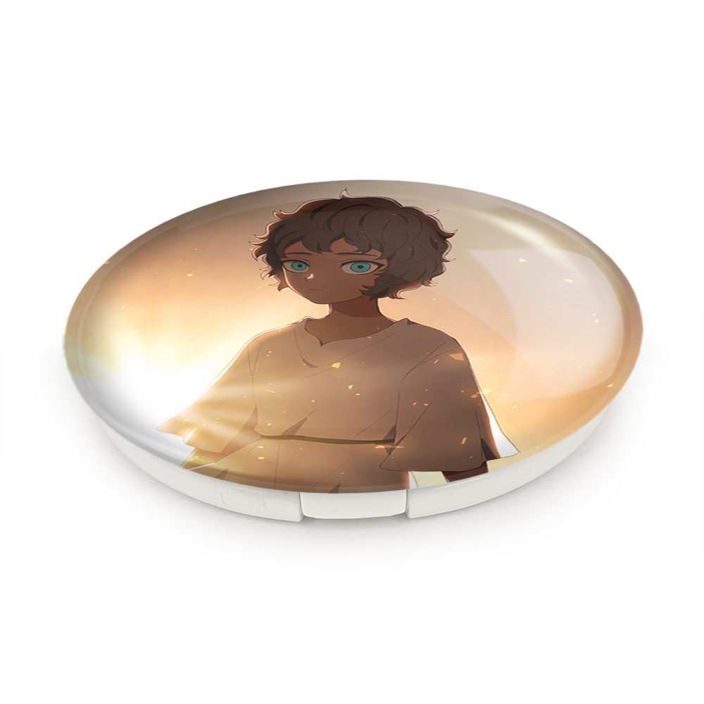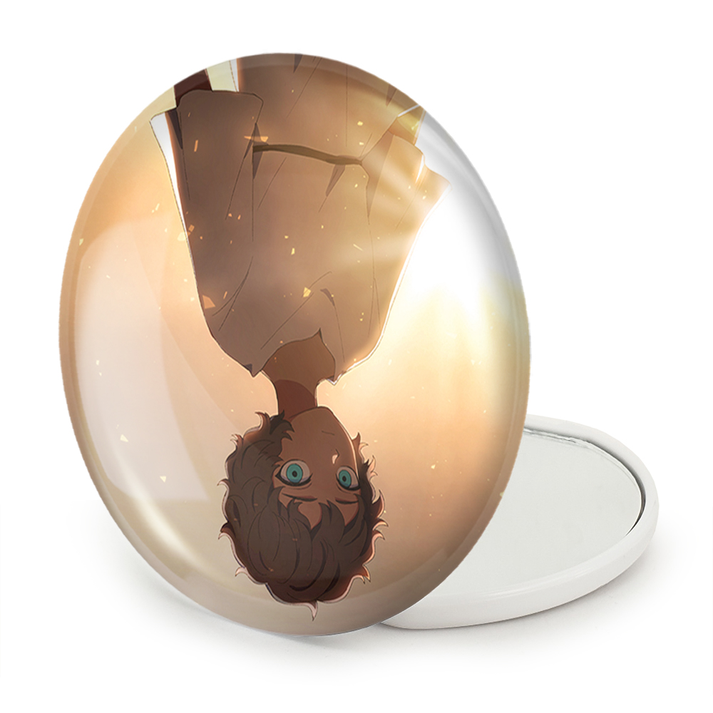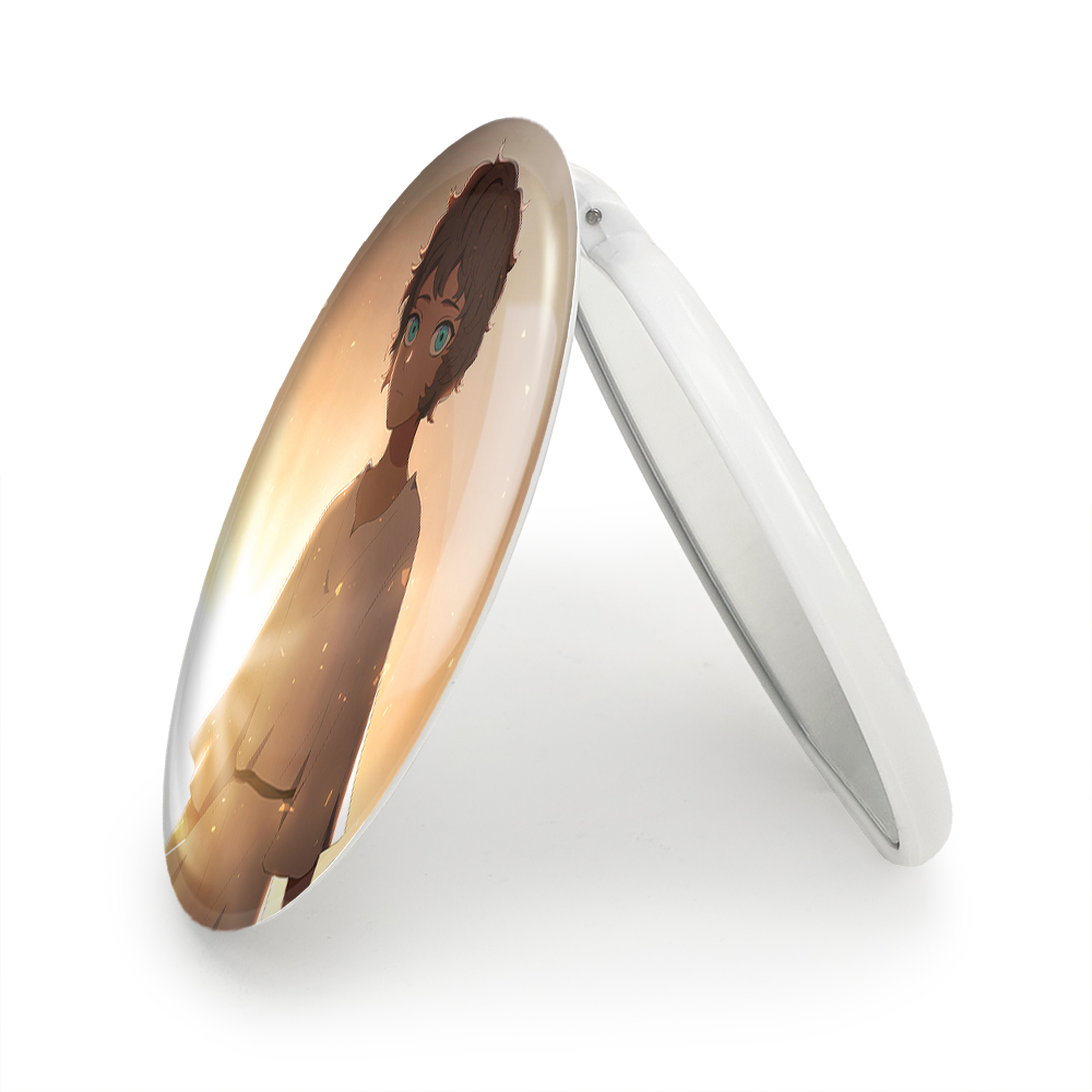 آینه های تاشو کابرو انیمه خوشمزه در سیاه چال خندالو، از جنس پلاستیک فشرده ABS تولید شده و به رنگ سفید می باشد. یکی از آینه ها ابعاد واقعی را نشان داده و دیگری با قابلیت بزرگنمایی، جزئیات را بهتر نمایش می دهد. ابعاد هر یک از آینه ها، دایره ای به قطر 7.5 سانت می باشد که نه خیلی بزرگ و غیر قابل استفاده در کیف آرایشی ست و نه خیلی کوچک که تصویر خاصی در آن مشاهده نشود. آینه تاشو کابرو انیمه خوشمزه در سیاه چال سایزی استاندارد و کارآمد دارد و در هر کیفی جا میگیرد. چاپ طرح بوسیله چاپگرهای دیجیتال شش رنگ با شفافیت و کیفیتی مثال زدنی بر روی یک وجه از بدنه ی آینه انجام گرفته و با روکش لمینت حرارتی پوشیده شده که در مقابل آسیب و خط و خش مقاوم بوده و کیفیت بالایی دارد. درب آینه بوسیله قفل بدنه ی آن، باز نمی ماند و کاملا بسته می شود و مناسب قرار گیری در کیف لوازم آرایش و کیف های کوچک دستی نیز هست. آینه های تاشو کابرو انیمه خوشمزه در سیاه چال خندالو با تنوع طرحی بسیار بالا، سلیقه هر نوع مخاطبی را تامین میکند.