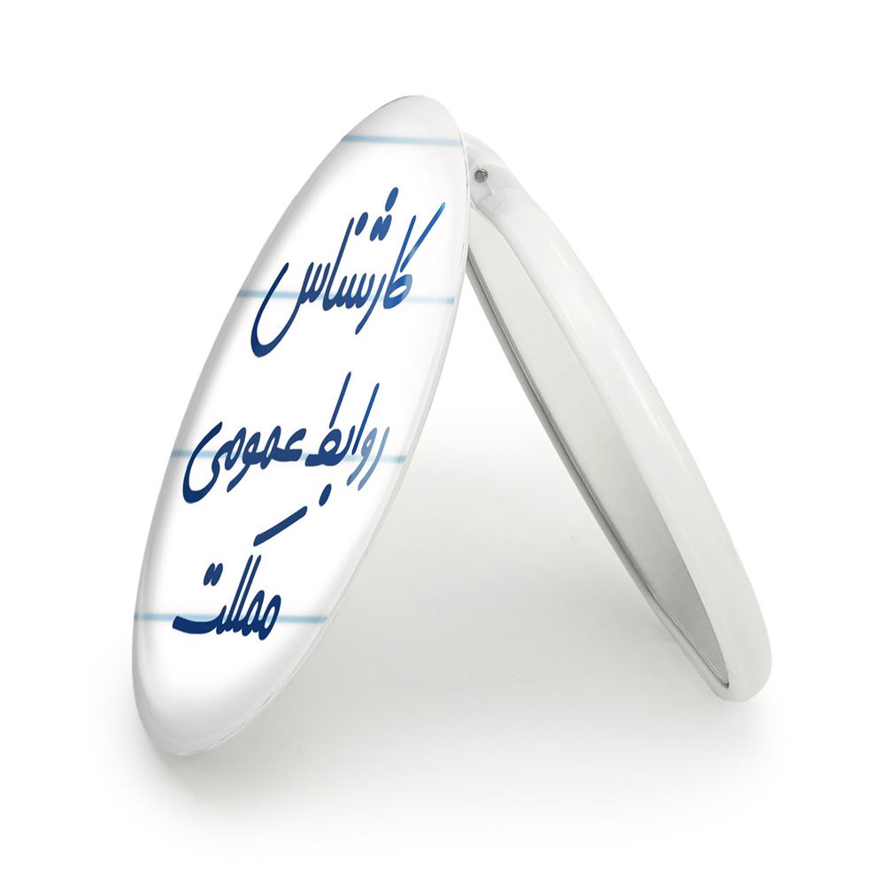 آینه های تاشو کارشناس روابط عمومی مملکت خندالو، از جنس پلاستیک فشرده ABS تولید شده و به رنگ سفید می باشد. یکی از آینه ها ابعاد واقعی را نشان داده و دیگری با قابلیت بزرگنمایی، جزئیات را بهتر نمایش می دهد. ابعاد هر یک از آینه ها، دایره ای به قطر 7.5 سانت می باشد که نه خیلی بزرگ و غیر قابل استفاده در کیف آرایشی ست و نه خیلی کوچک که تصویر خاصی در آن مشاهده نشود. آینه تاشو کارشناس روابط عمومی مملکت سایزی استاندارد و کارآمد دارد و در هر کیفی جا میگیرد. چاپ طرح بوسیله چاپگرهای دیجیتال شش رنگ با شفافیت و کیفیتی مثال زدنی بر روی یک وجه از بدنه ی آینه انجام گرفته و با روکش لمینت حرارتی پوشیده شده که در مقابل آسیب و خط و خش مقاوم بوده و کیفیت بالایی دارد. درب آینه بوسیله قفل بدنه ی آن، باز نمی ماند و کاملا بسته می شود و مناسب قرار گیری در کیف لوازم آرایش و کیف های کوچک دستی نیز هست. آینه های تاشو کارشناس روابط عمومی مملکت خندالو با تنوع طرحی بسیار بالا، سلیقه هر نوع مخاطبی را تامین میکند.