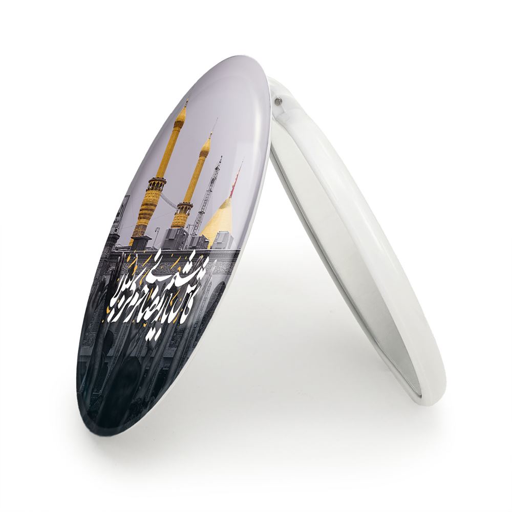 آینه های تاشو کاش باشیم رمضانی حرم کربُبلا خندالو، از جنس پلاستیک فشرده ABS تولید شده و به رنگ سفید می باشد. یکی از آینه ها ابعاد واقعی را نشان داده و دیگری با قابلیت بزرگنمایی، جزئیات را بهتر نمایش می دهد. ابعاد هر یک از آینه ها، دایره ای به قطر 7.5 سانت می باشد که نه خیلی بزرگ و غیر قابل استفاده در کیف آرایشی ست و نه خیلی کوچک که تصویر خاصی در آن مشاهده نشود. آینه تاشو کاش باشیم رمضانی حرم کربُبلا سایزی استاندارد و کارآمد دارد و در هر کیفی جا میگیرد. چاپ طرح بوسیله چاپگرهای دیجیتال شش رنگ با شفافیت و کیفیتی مثال زدنی بر روی یک وجه از بدنه ی آینه انجام گرفته و با روکش لمینت حرارتی پوشیده شده که در مقابل آسیب و خط و خش مقاوم بوده و کیفیت بالایی دارد. درب آینه بوسیله قفل بدنه ی آن، باز نمی ماند و کاملا بسته می شود و مناسب قرار گیری در کیف لوازم آرایش و کیف های کوچک دستی نیز هست. آینه های تاشو کاش باشیم رمضانی حرم کربُبلا خندالو با تنوع طرحی بسیار بالا، سلیقه هر نوع مخاطبی را تامین میکند.