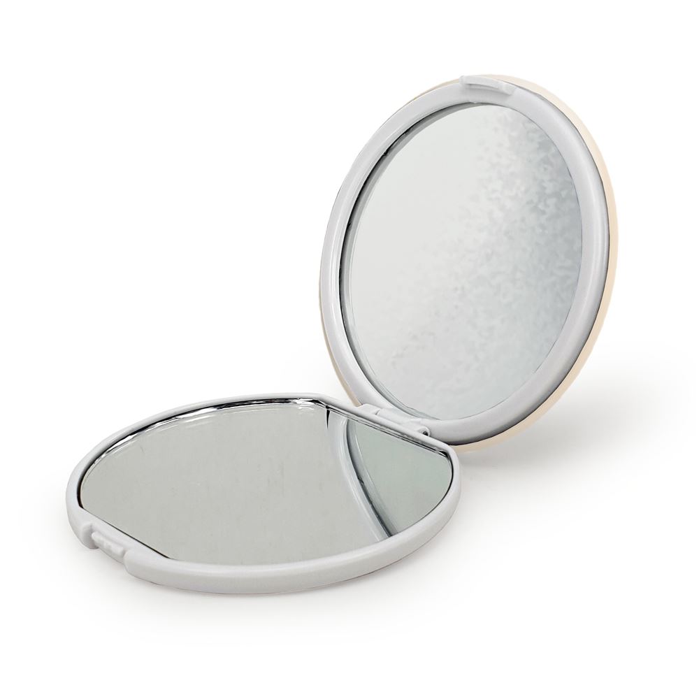 آینه های تاشو کافی شاپ قهوه خندالو، از جنس پلاستیک فشرده ABS تولید شده و به رنگ سفید می باشد. یکی از آینه ها ابعاد واقعی را نشان داده و دیگری با قابلیت بزرگنمایی، جزئیات را بهتر نمایش می دهد.